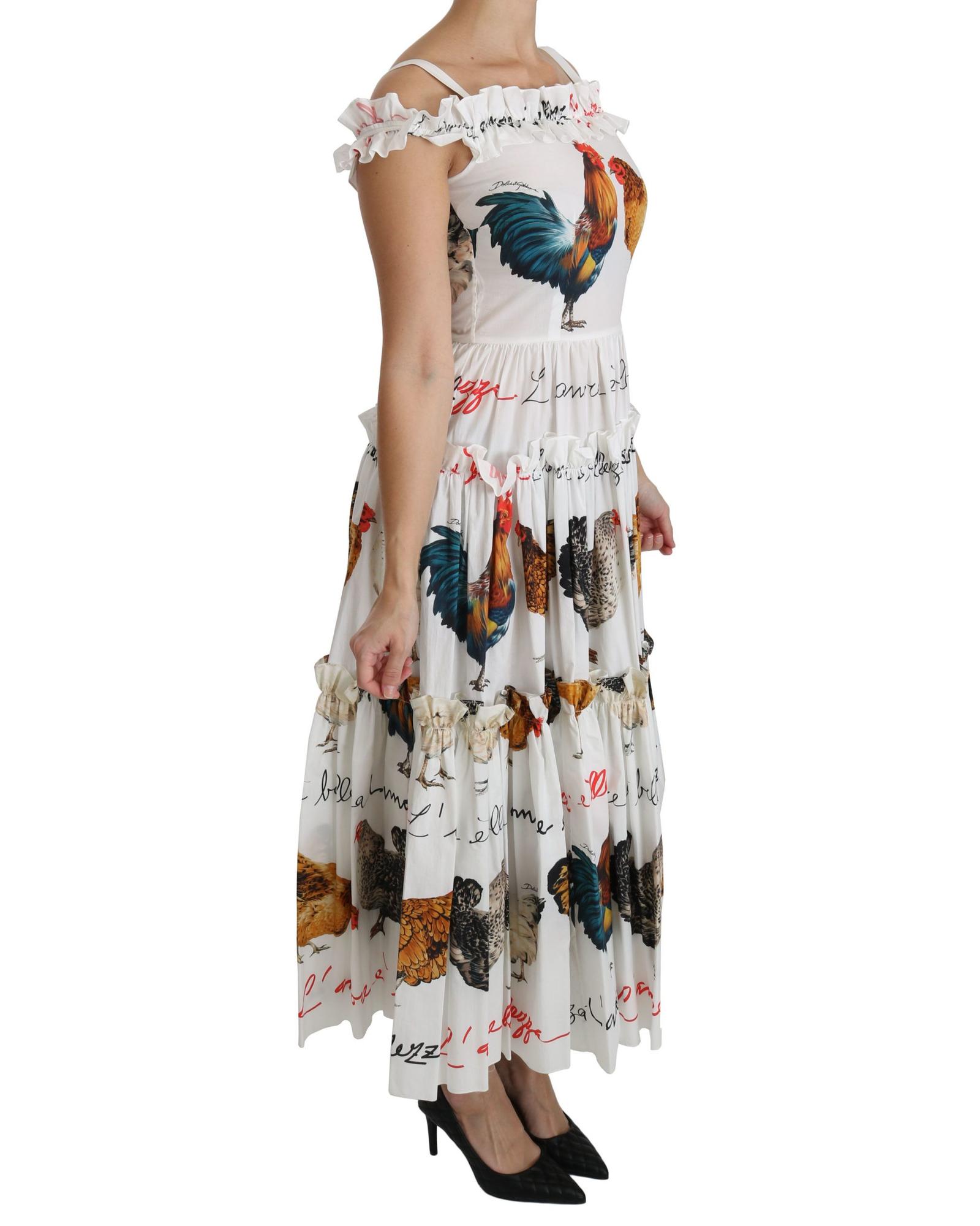 100% Authentic Dolce & Gabbana Sheath Midi Dress with Rooster Print 38 IT Women