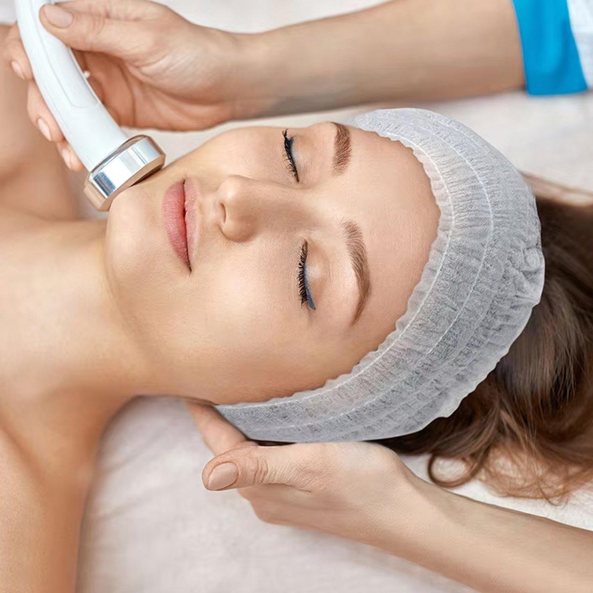 This set of disposable hair bands is designed for professional salon care and personal use. Made from soft, breathable non-woven fabric, they are lightweight and comfortable for extended wear. The elastic band ensures a secure fit for various hair types, making them ideal for keeping hair away from the face during facials, makeup application, spa treatments, or personal grooming.