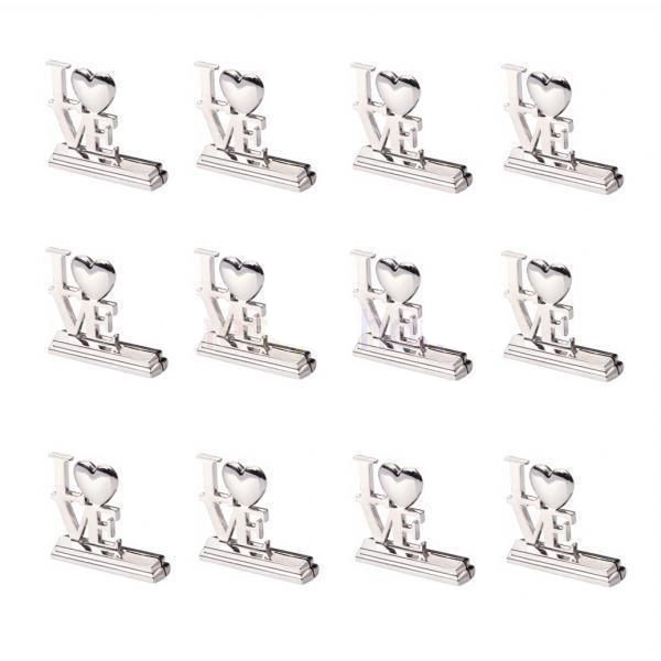 100 Bulk Buy Pack of Wedding Name Card Place Stand Silver LOVE Letters – Wedding Anniversary or Engagement Party