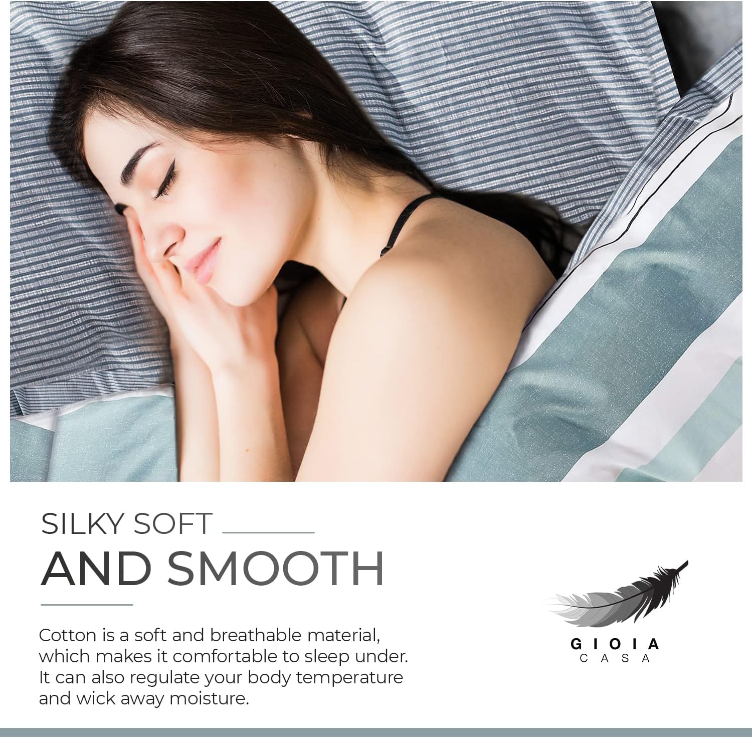 This quilt cover set is made from 100% cotton, offering a soft, breathable, and comfortable sleeping experience. Its reversible design provides two different patterns in one set, allowing for easy style updates. The set features a stylish appearance suitable for various bedroom decors and is easy to care for with machine washable instructions.