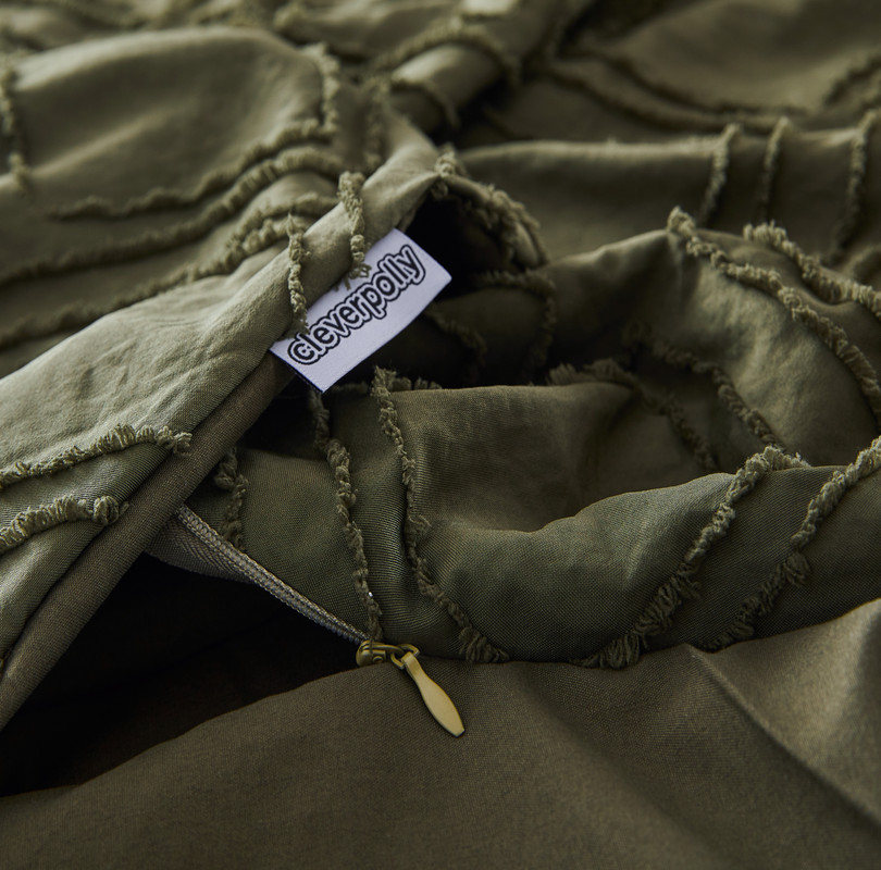 100% Premium Tufted Microfibre Quilt Cover Set – Ultra-Soft, Durable Embroidery Bedding Comforter Set – Machine Washable & Zipper Closure – Khaki Green – Queen