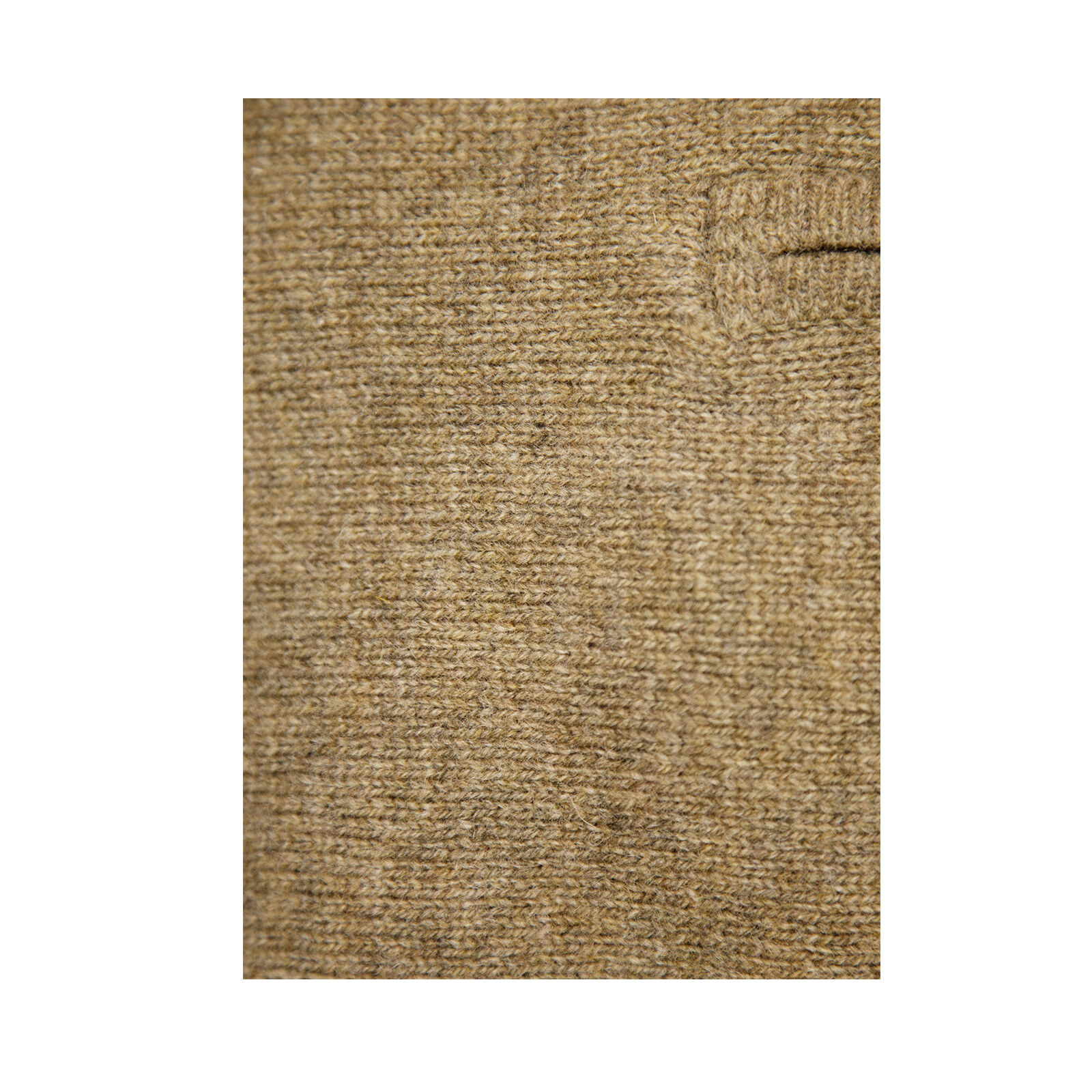 This half-zip knit jumper is crafted from 100% Shetland wool, a natural and sustainable fiber, ensuring high quality and warmth. It is designed to be worn comfortably over a shirt, making it suitable for winter wear. The jumper features a classic knitted pattern and a versatile nutmeg color, suitable for various styles and occasions.