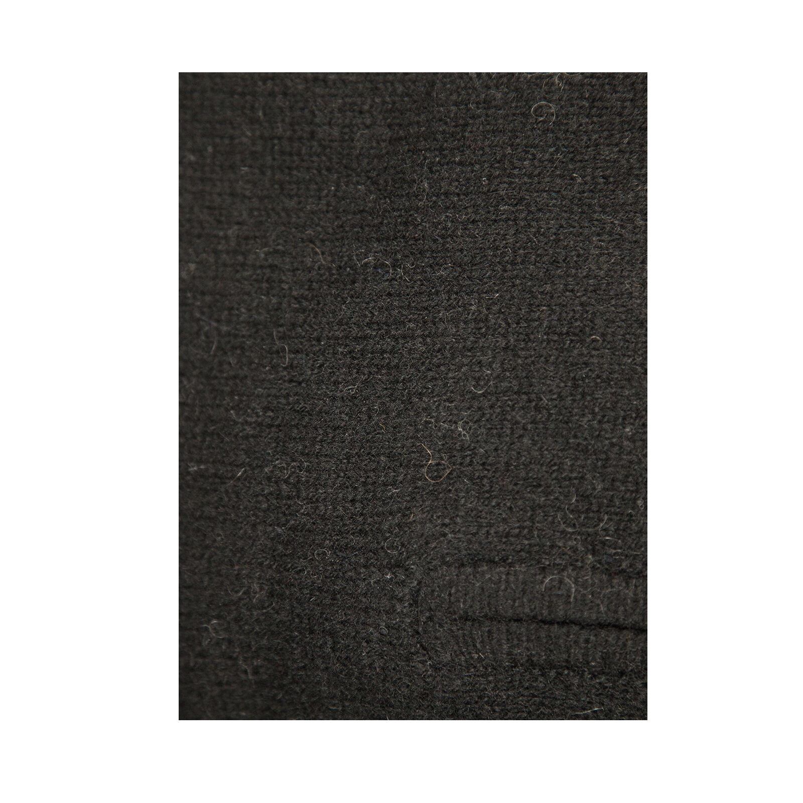 This half-zip knit jumper is crafted from 100% Shetland wool, a natural and sustainable fiber, ensuring high quality and durability. Its plain black design makes it versatile for various outfits, providing warmth and comfort during colder months. The jumper is suitable for layering over shirts and is available in multiple sizes to fit different body types.