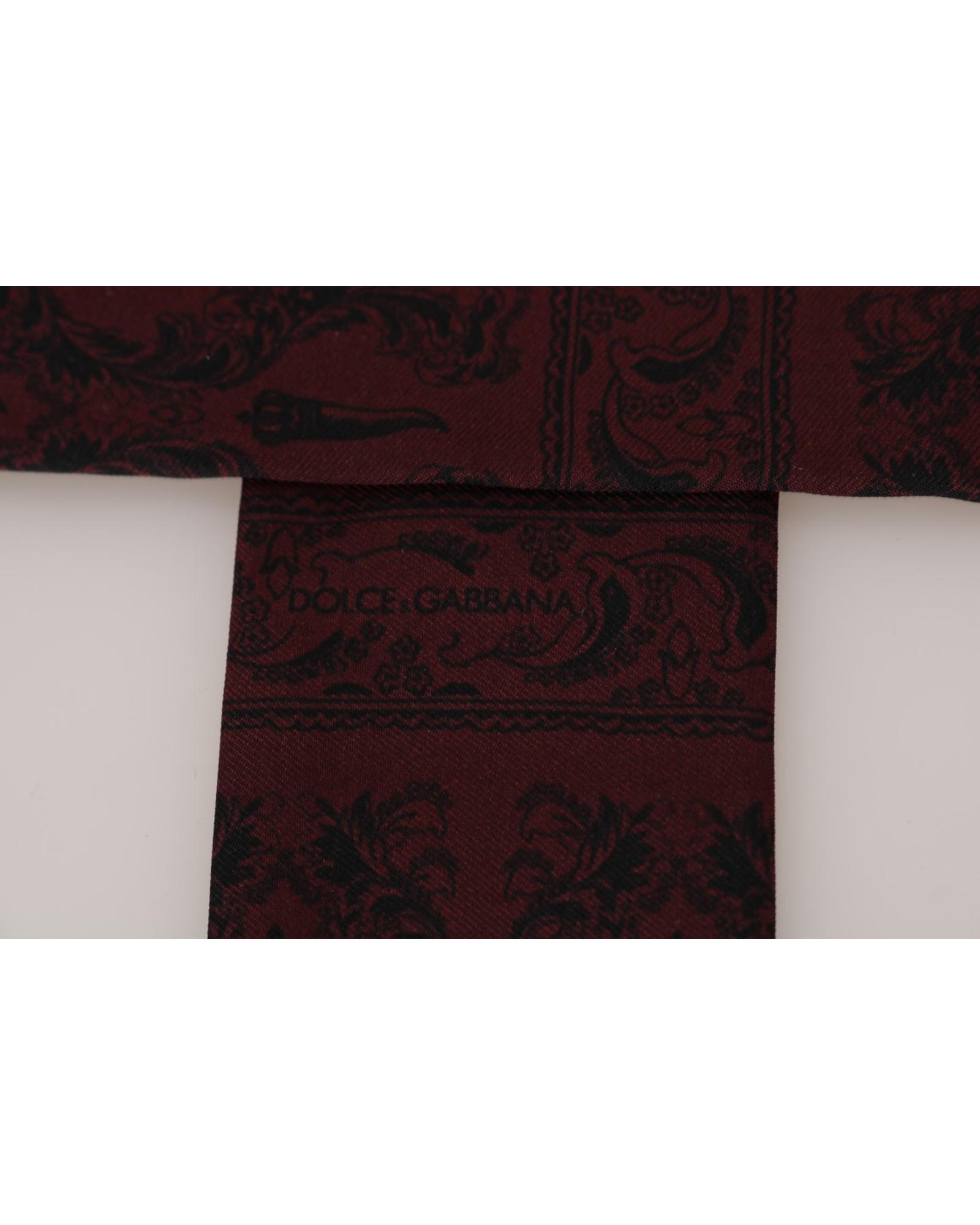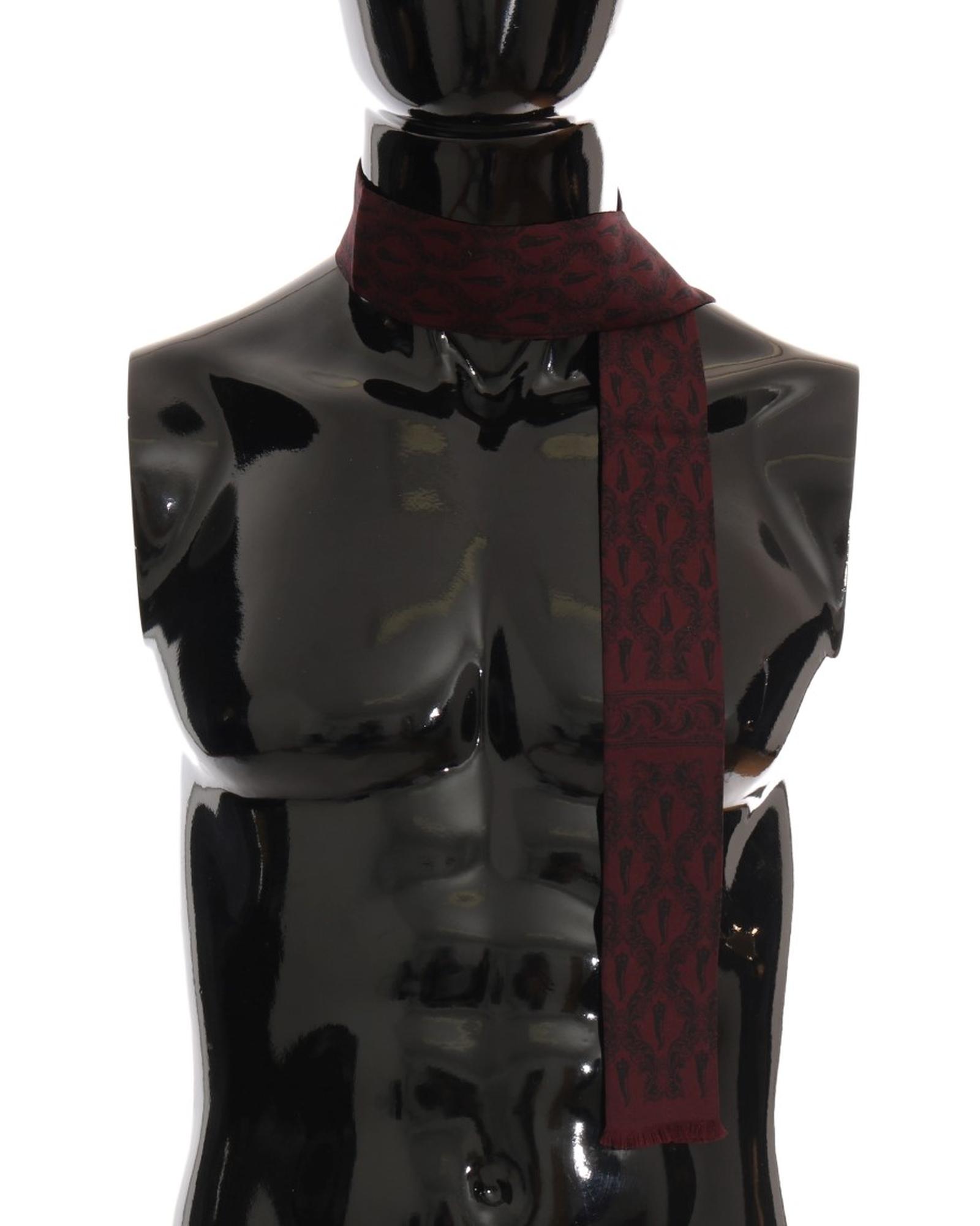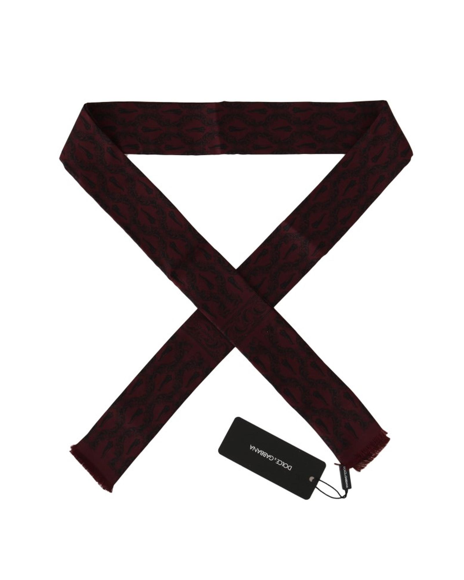 This is a luxurious silk tie scarf wrap designed for men, offering a stylish accessory for various occasions. Crafted from high-quality silk, it features a distinctive Bordeaux color with a crown chili print and detailed logo accents. The wrap is made in Italy, ensuring premium craftsmanship and elegance.