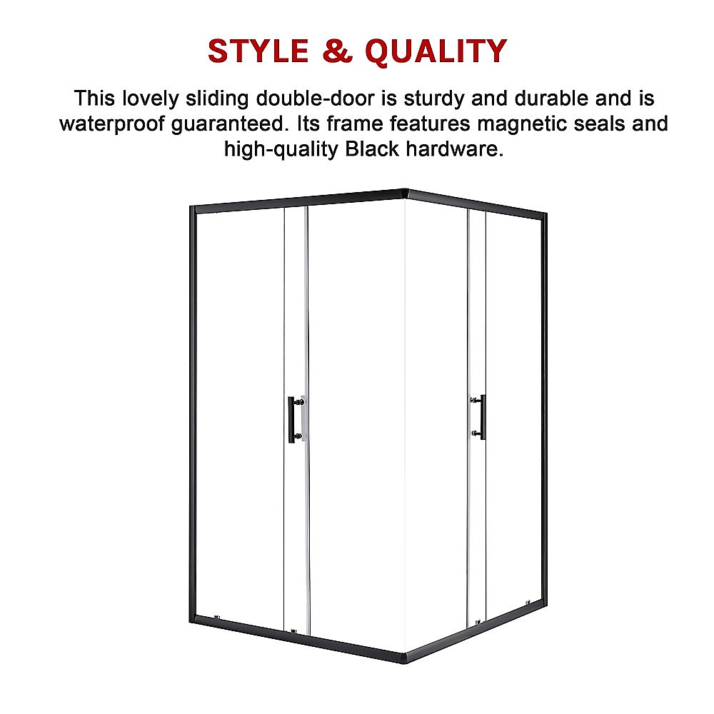 This sliding double-door shower enclosure features high-quality safety glass and a sleek design, making it a stylish and functional addition to any bathroom. The enclosure is designed for smooth operation with a multi-wheel system and includes a quick-release door for easy cleaning and maintenance.