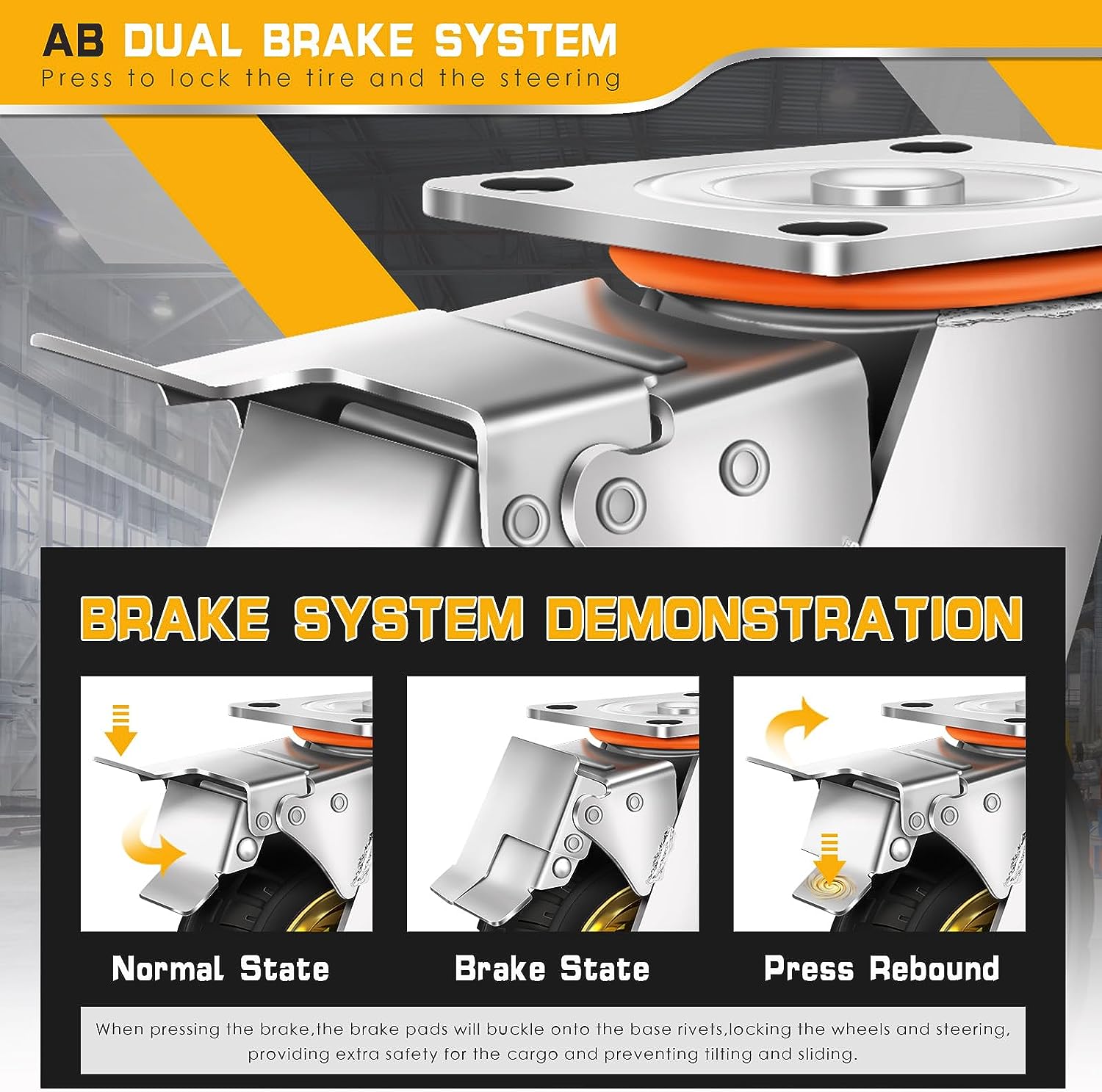• Four-wheel design with two fixed and two swivel caster wheels, equipped with brakes for easy maneuverability and stability in any direction.