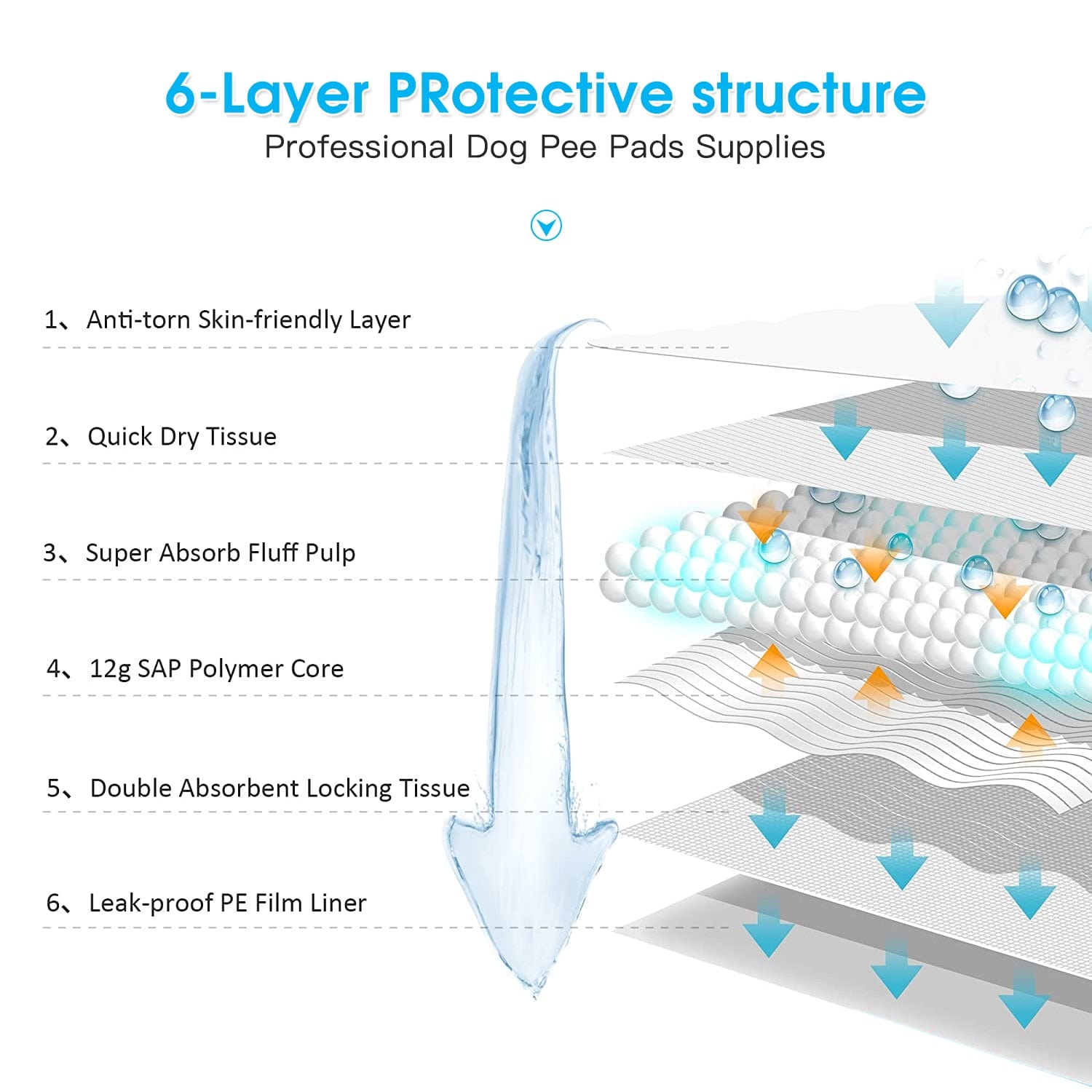 - Super absorbent and thicker with a 6-layer protection design, making it more absorbent than standard puppy pads
