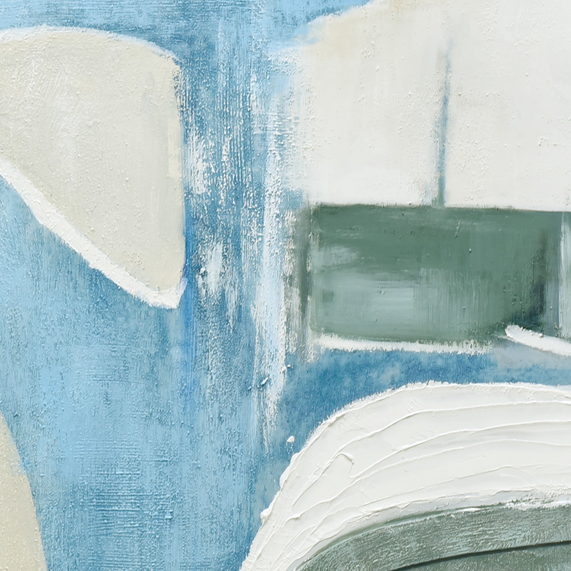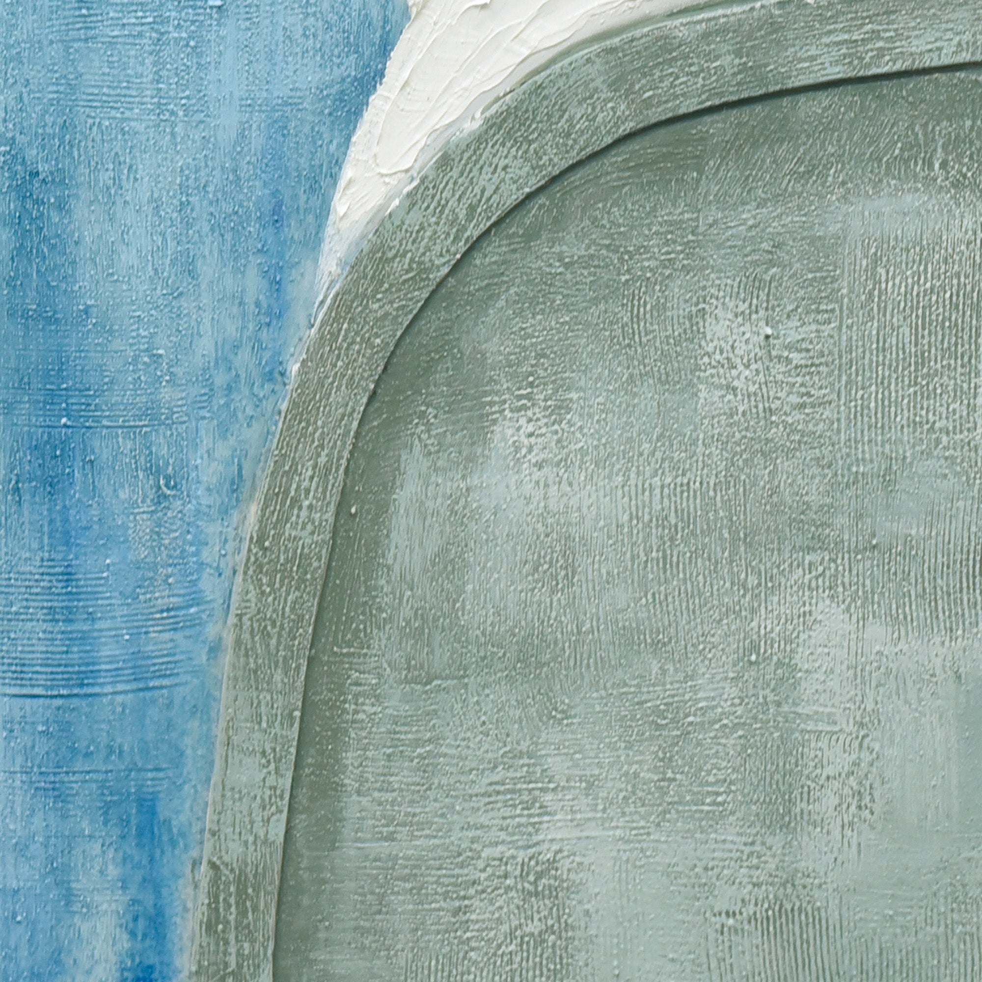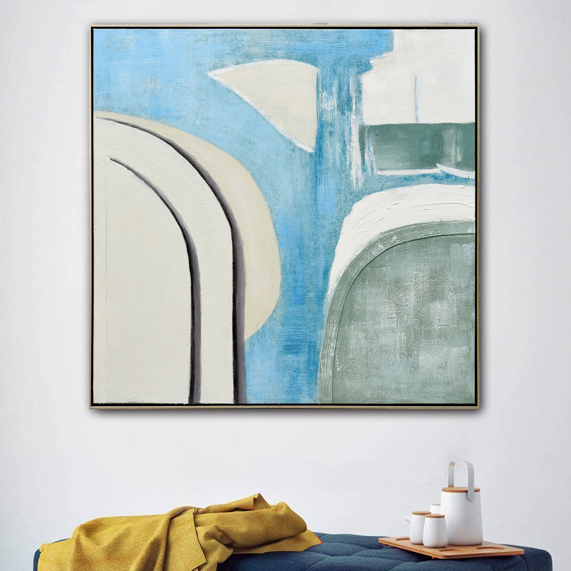 This wall art features a hand-painted design on premium canvas with a floating frame, showcasing intricate patterns and a soothing color palette. The artwork combines form, color, and texture to create a captivating visual experience, emphasizing the beauty of abstraction and the craftsmanship of hand-painting.