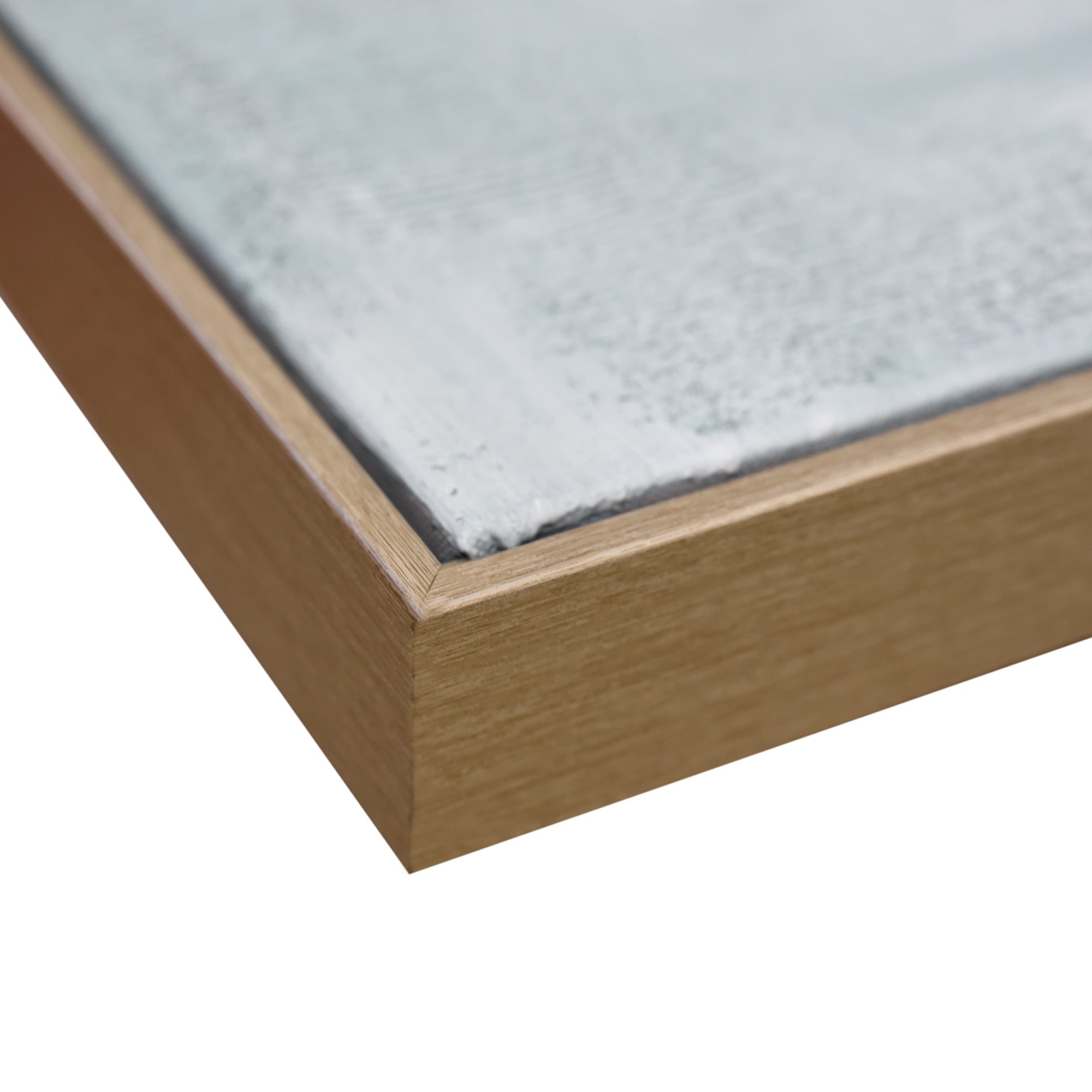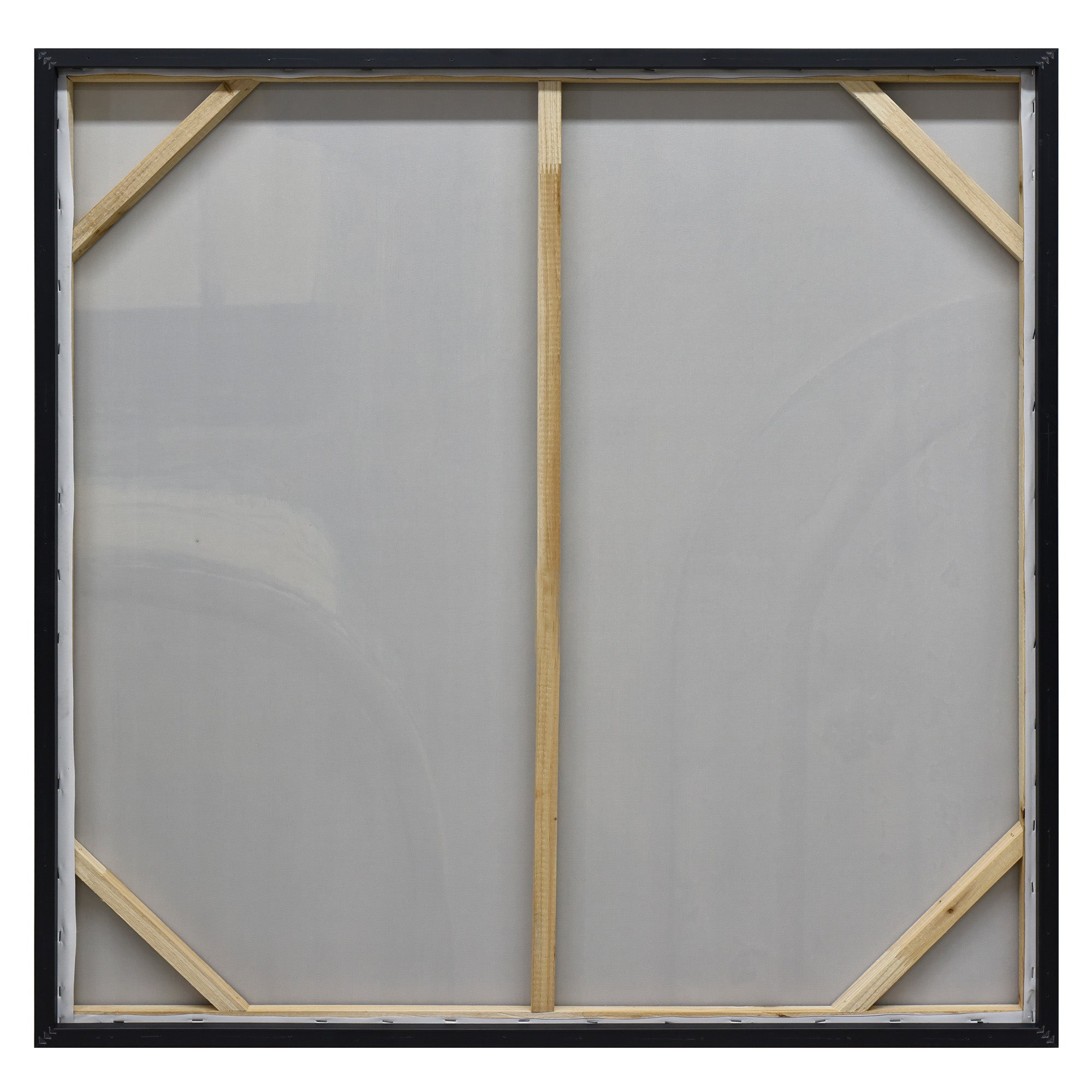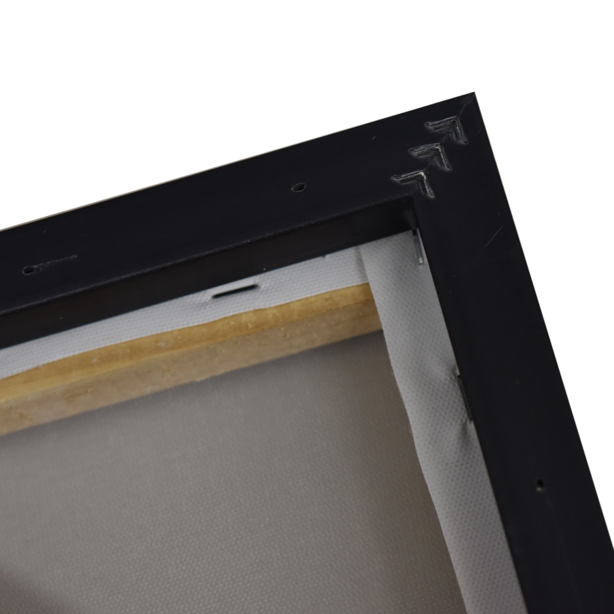 The artwork is stretched and gallery wrapped around a wooden stretcher, finished with a floating frame that creates a gap between the print and the frame, enhancing the floating effect and making the canvas stand out.