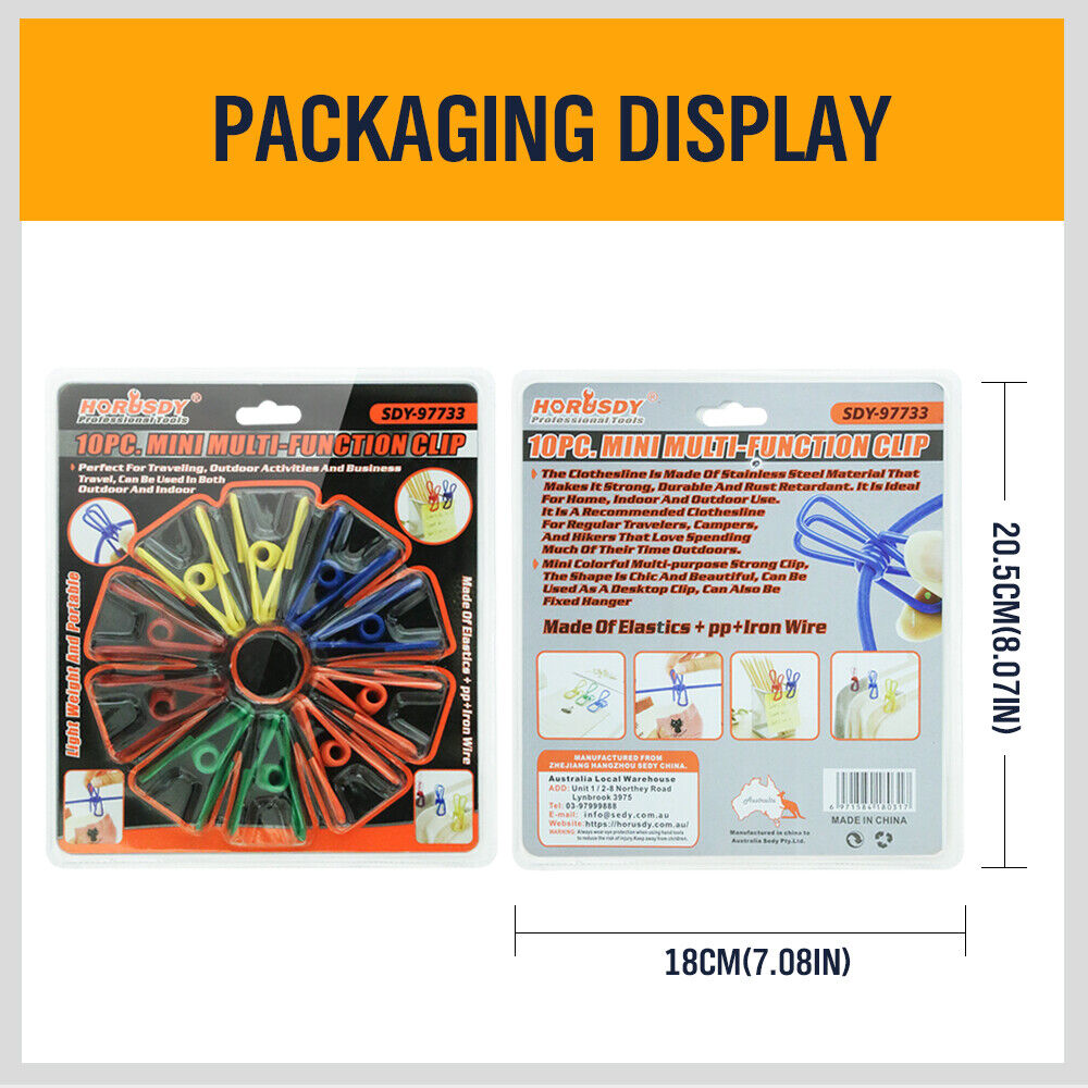 - Multi-purpose clips for clothes line, bag sealing, paper clips, and more