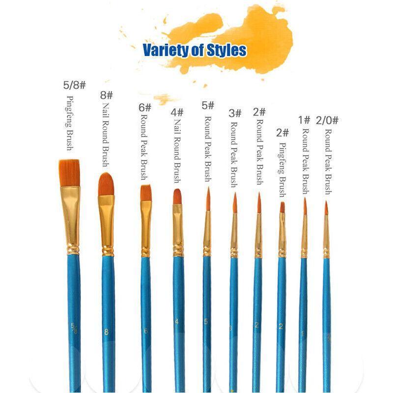 10pcs Artist Paint Brush Set Acrylic Oil Watercolour Gouache Painting Supplies – Blue
