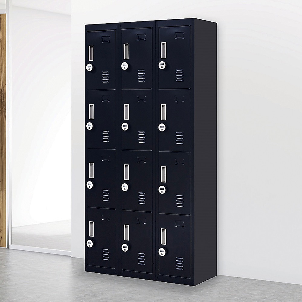This 12-door locker unit offers a secure and organized storage solution suitable for various environments such as offices, gyms, schools, and homes. It features multiple compartments with individual locks, providing ample space and privacy for users. The sturdy construction and thoughtful design make it easy to assemble and maintain.