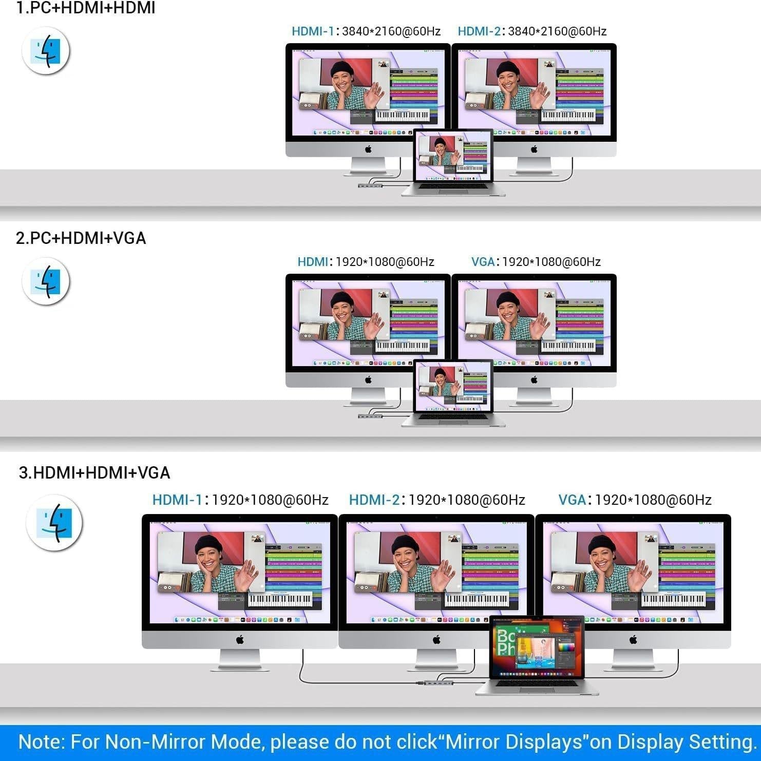 12-In-1 Usb-C Hub Triple Monitor Support 4K Hdmi 85W Pd