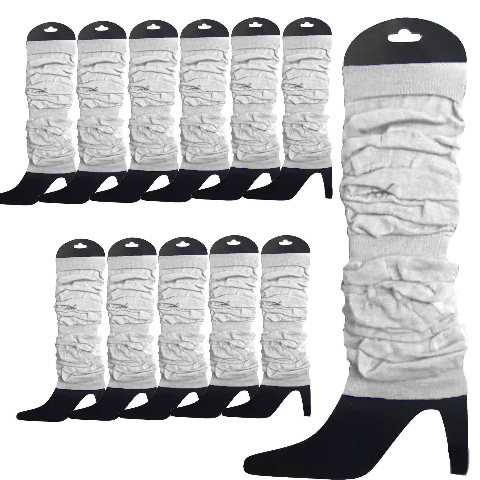 12 LEG WARMERS Knitted Womens Neon Party Knit Ankle Fluro Dance Costume 80s BULK – White