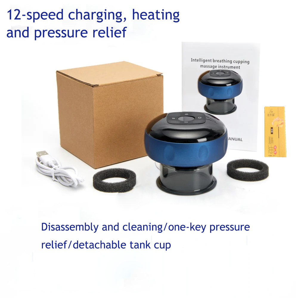 This electric cupping therapy device combines multiple functions including scraping, cupping, and hot compress to provide effective muscle relaxation and skin care. It features adjustable suction levels, intelligent temperature control, and a portable design for convenient use anytime and anywhere.