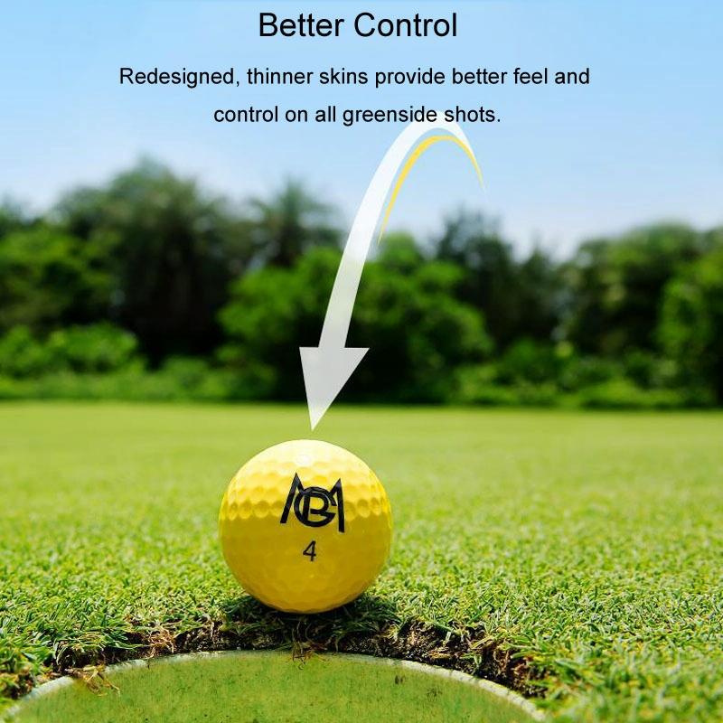 This set includes 12 colorful double-layer golf practice balls designed to enhance your game. The balls feature a durable synthetic rubber construction with a two-ply core, providing low spin for longer shots and high ball speed. The redesigned thinner skins offer improved feel and control on greenside shots, while the larger, faster core and aerodynamic design contribute to increased hitting distance.