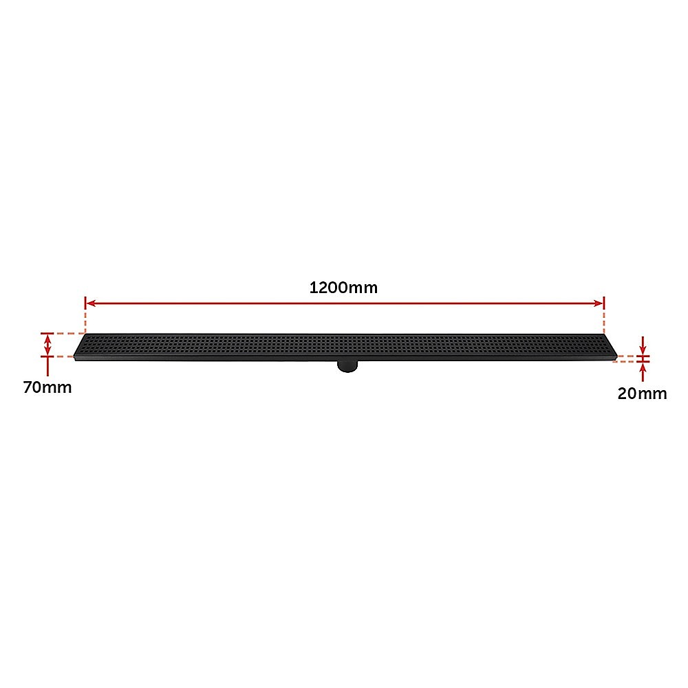 1200mm Bathroom Shower Black Grate Drain w/Centre outlet Floor Waste Square Pattern