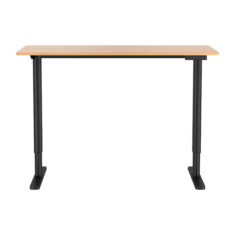 This electric standing desk offers a versatile workspace solution with adjustable height settings suitable for both sitting and standing positions. It features a modern design with a sturdy metal frame and a smooth-edged desktop, providing comfort and stability for home or office use. The desk operates quietly and includes convenient controls for easy height adjustment and preset configurations.