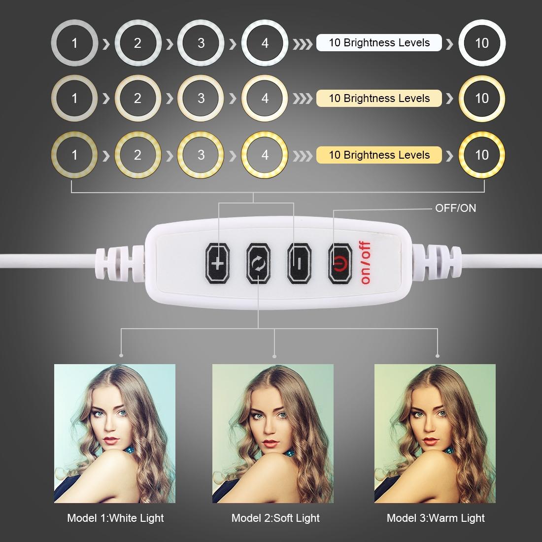 This portable LED ring light features a 12cm diameter and comes with a USB power supply. It is designed for versatile use in photography, vlogging, and live streaming, offering adjustable brightness and multiple lighting modes. The included tripod with a ball head allows for flexible angle adjustments, making it suitable for various shooting scenarios.
