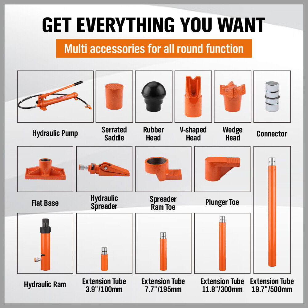 This hydraulic portapower kit is designed to enhance your repair efficiency with a 12-ton capacity hydraulic pump. It features an automatic overload system to prevent damage and includes a hydraulic spreader with a 1/2 ton capacity, making various repair tasks easier and more effective.