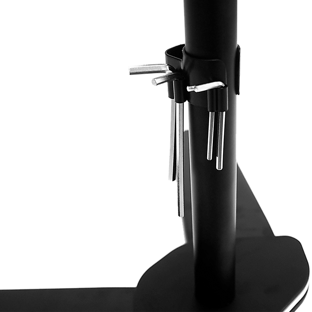 This dual screen monitor stand is designed to support monitors ranging from 13 to 27 inches, providing flexible positioning options to enhance comfort and productivity. It allows users to adjust the monitor’s height, tilt, swivel, and rotation for optimal ergonomic setup, whether sitting or standing. The stand is suitable for various workspace configurations and helps keep the area organized with included cable management accessories.