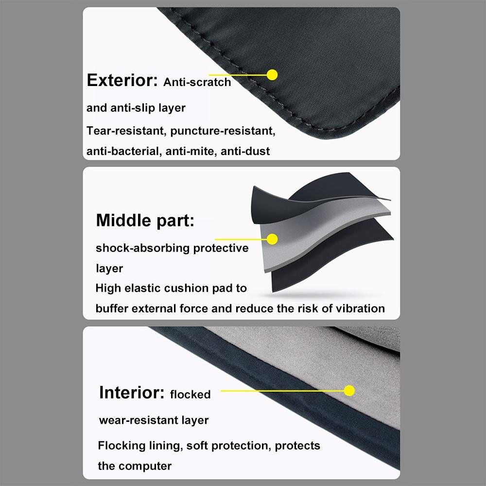 This 13-inch multi-layer laptop sleeve offers a waterproof and shock-absorbing storage solution, designed to protect your device while providing a neat and organized appearance. Crafted from high-quality nylon, it features multiple compartments for classified storage and a hidden sewing design for durability. Its lightweight and slim profile make it easy to carry, making it an ideal choice for daily use and travel.