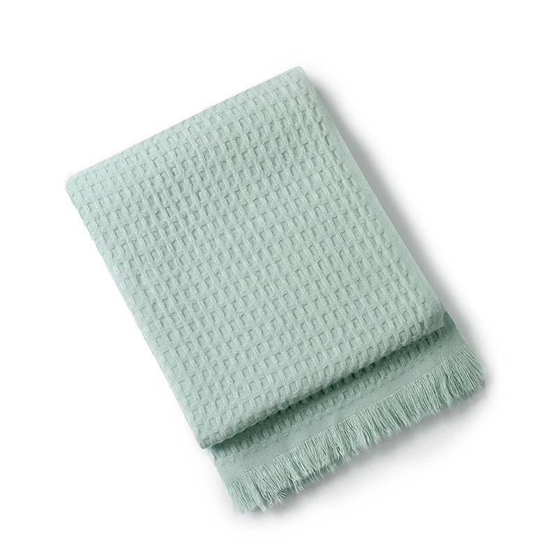 - Stylish waffle weave pattern with fringed edges for added sophistication