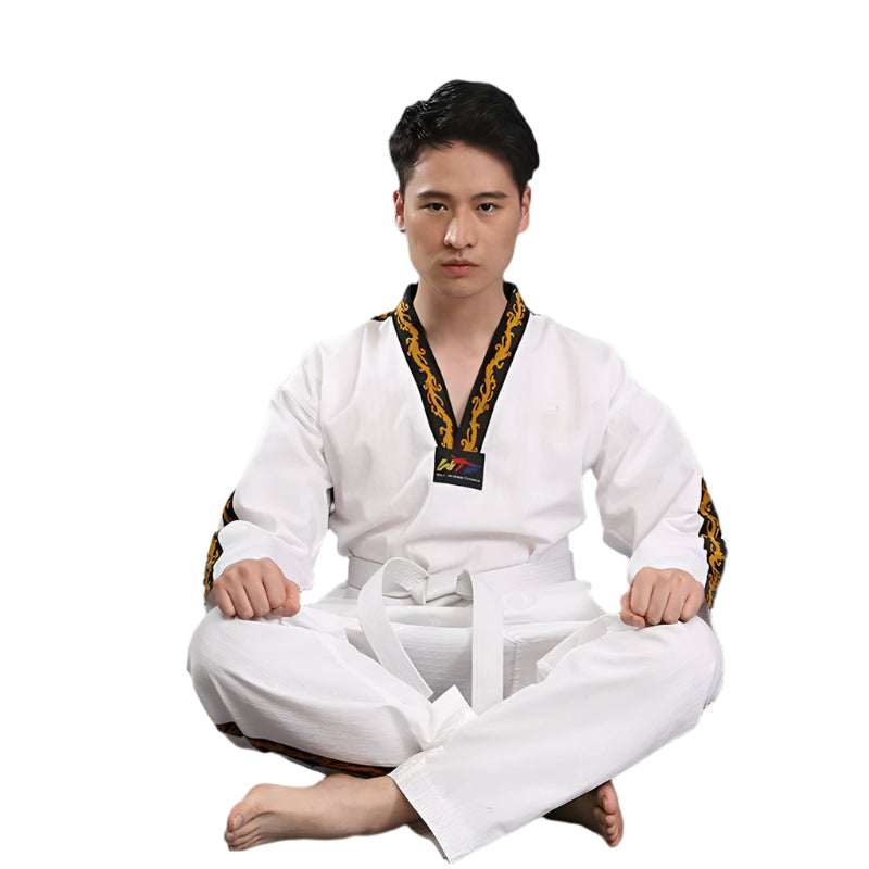 This cotton taekwondo training uniform is designed for all ages, offering comfort, durability, and a natural fit. Made from lightweight and breathable polyester fiber, it features fine tailoring and hand-locked edges for a polished appearance. The uniform includes a widened crotch design for better movement and a firm, adjustable waistband for a comfortable fit.