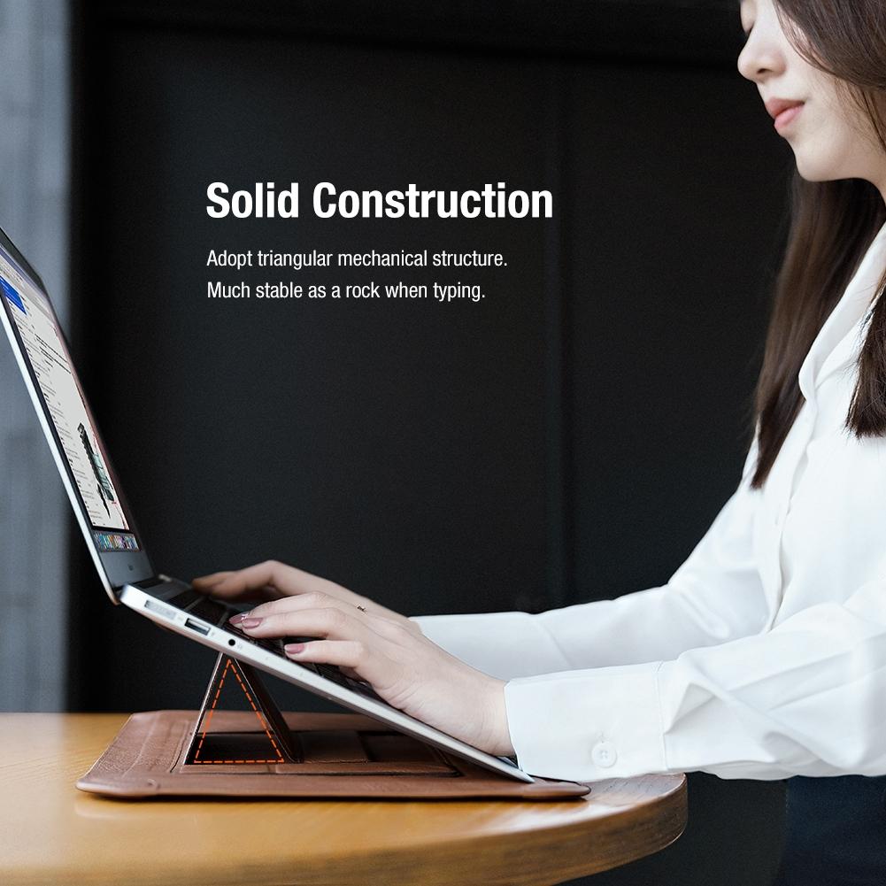This 14.0 inch water wave texture laptop sleeve features a versatile design suitable for protecting and carrying your laptop. Made from preferred PU leather, it offers a warm, silky touch and is waterproof, dirt-resistant, wear-resistant, and durable. The sleeve includes a hidden magnetic stand for ergonomic use and adjustable angles for different viewing preferences. It also allows for air circulation to help cool the device and can be used as a mouse pad or notepad pad for added convenience.