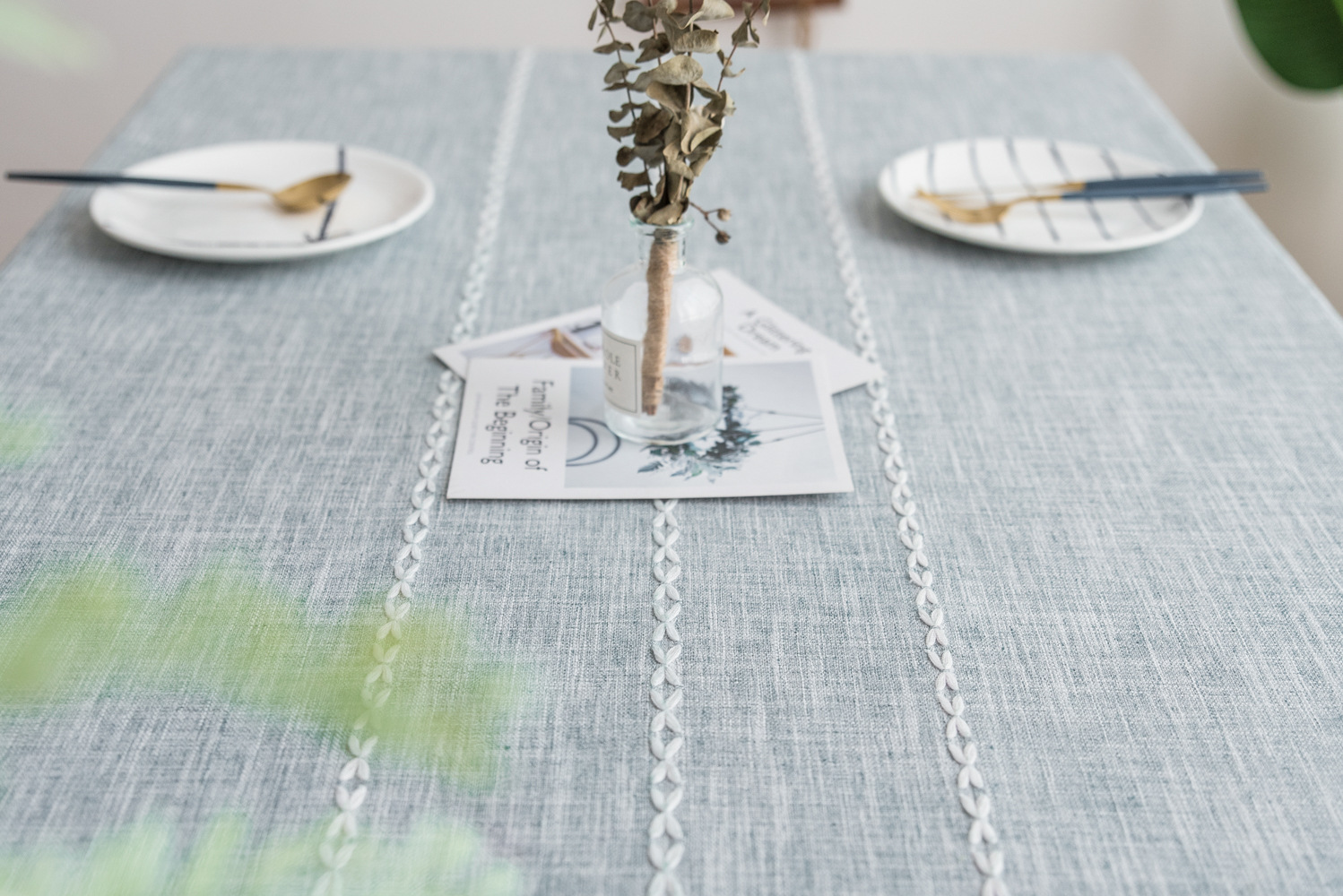 This 140x200cm grey striped cotton linen embroidered tassel tablecloth combines European and American pastoral styles, adding elegance and charm to any dining setting. Its sophisticated design makes it suitable for restaurants, cafes, and home dining areas, enhancing the overall aesthetic with a touch of refinement.
