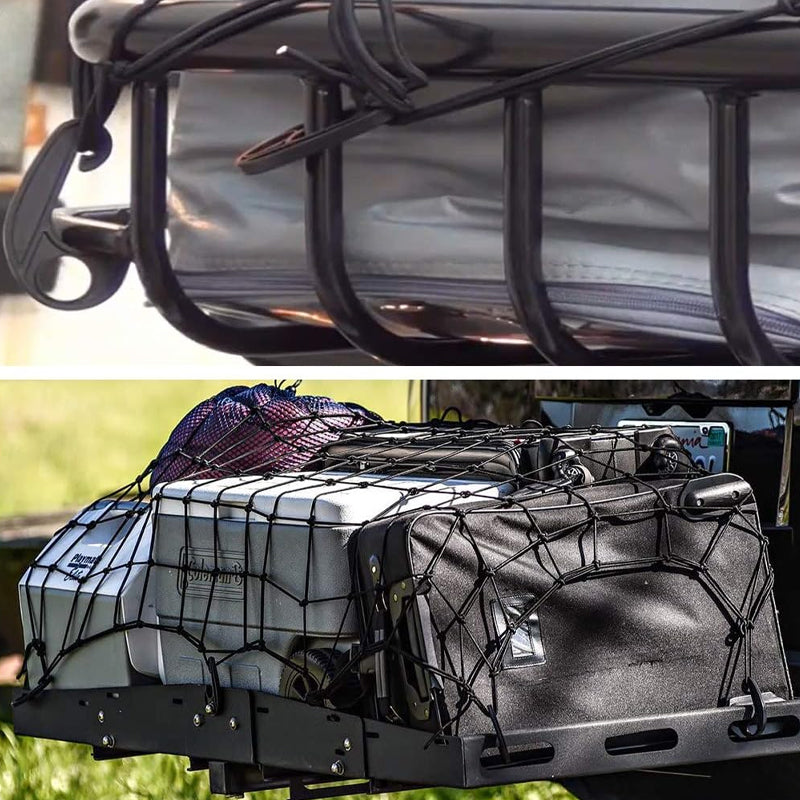 These heavy-duty luggage net hooks are designed to secure cargo in vehicles such as cars and bikes. Made from durable plastic, they provide strong elasticity and a reliable grip to keep items stable during transportation, enhancing safety and convenience.