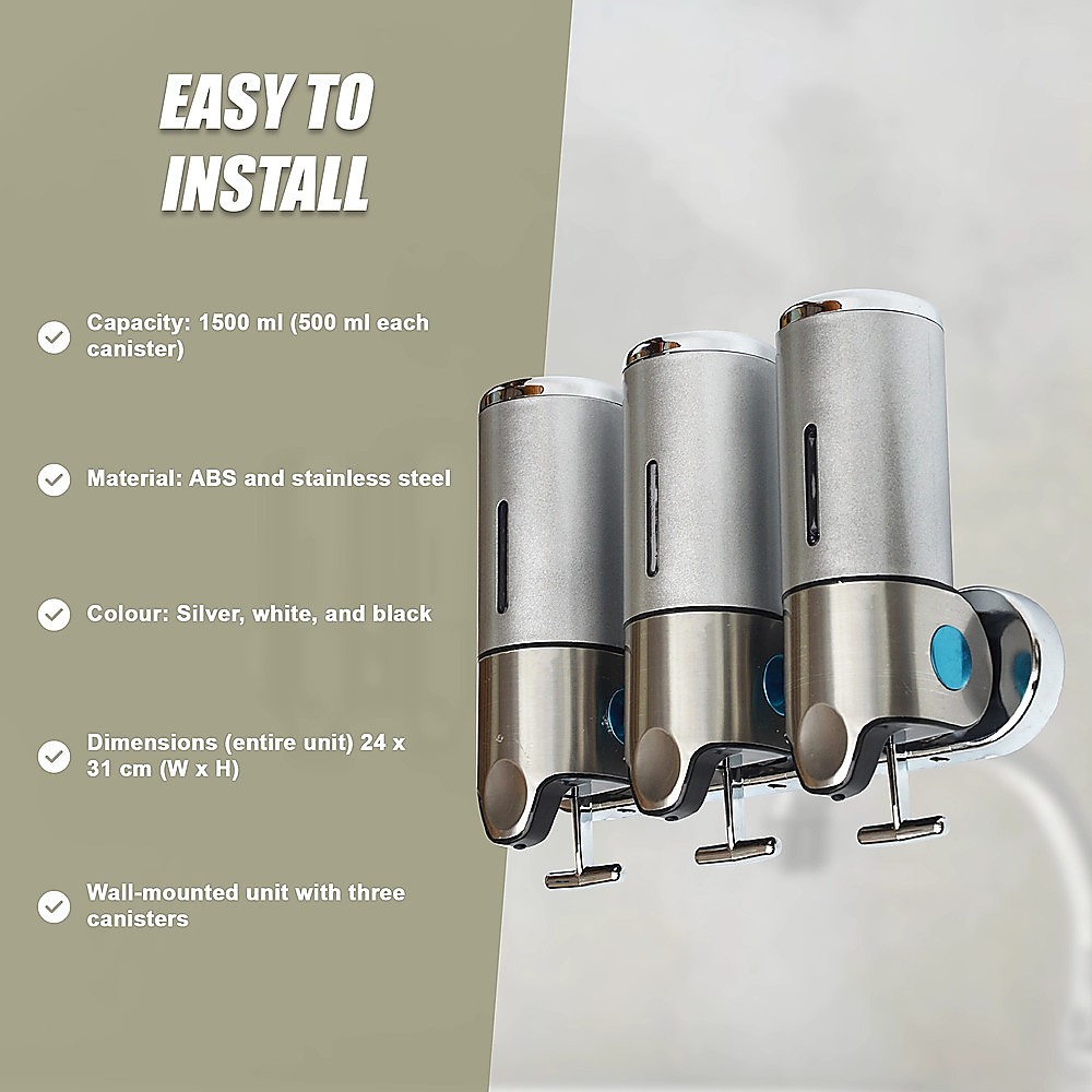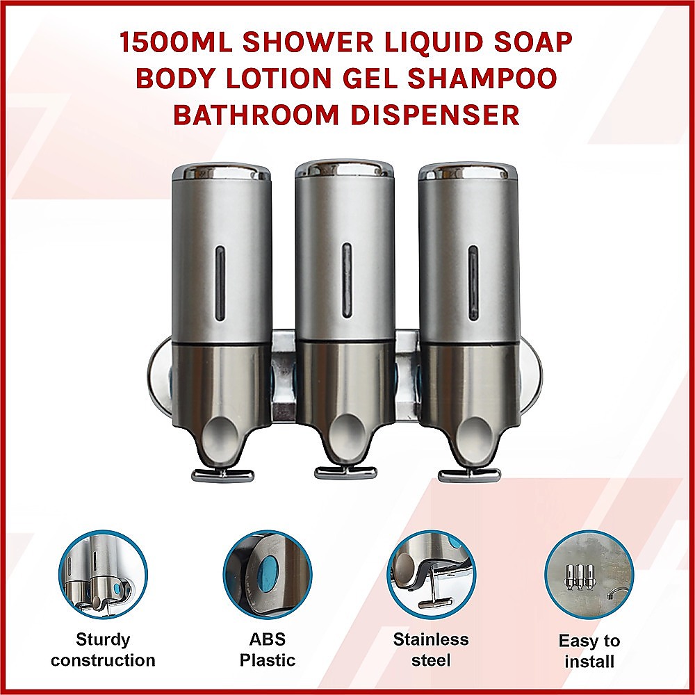 This 1500ml shower liquid soap, body lotion, gel, and shampoo dispenser offers a practical solution for organizing your bathroom or kitchen. Its sleek and modern design enhances the aesthetic of any space while providing convenient storage for multiple liquid products in one wall-mounted unit.