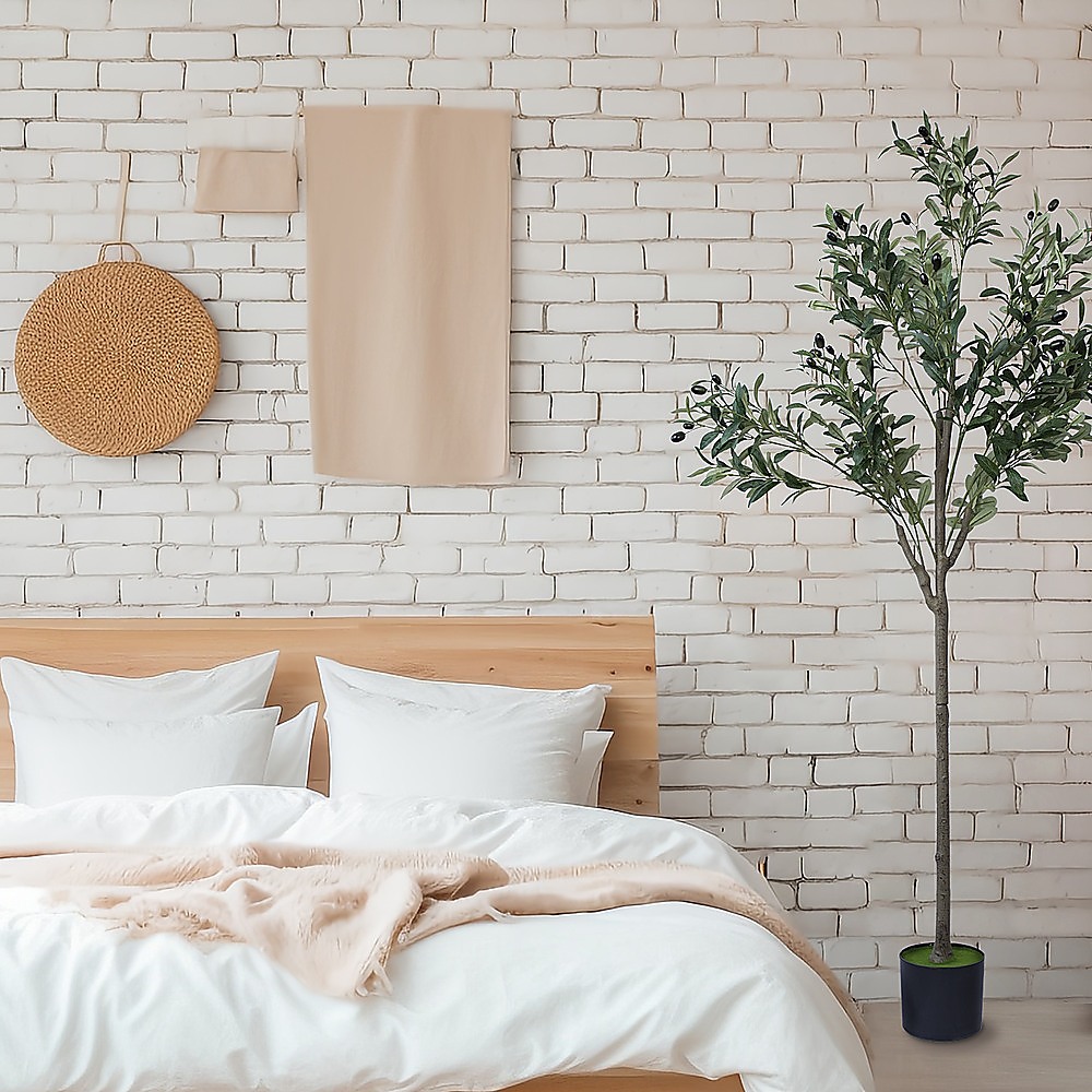 This 150cm artificial olive tree offers a realistic and vibrant addition to any indoor or outdoor space. Designed to closely resemble a natural olive tree, it provides lush greenery without the need for maintenance, making it an ideal decorative piece for homes, offices, or commercial areas.