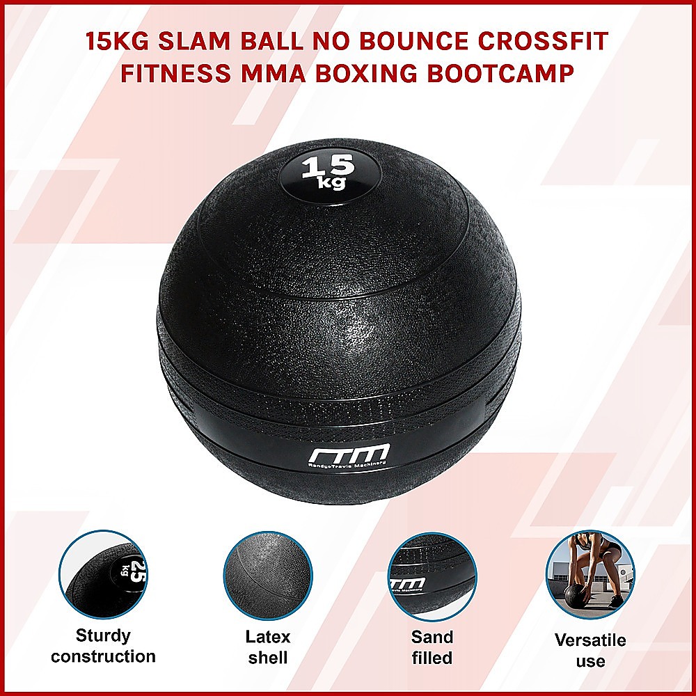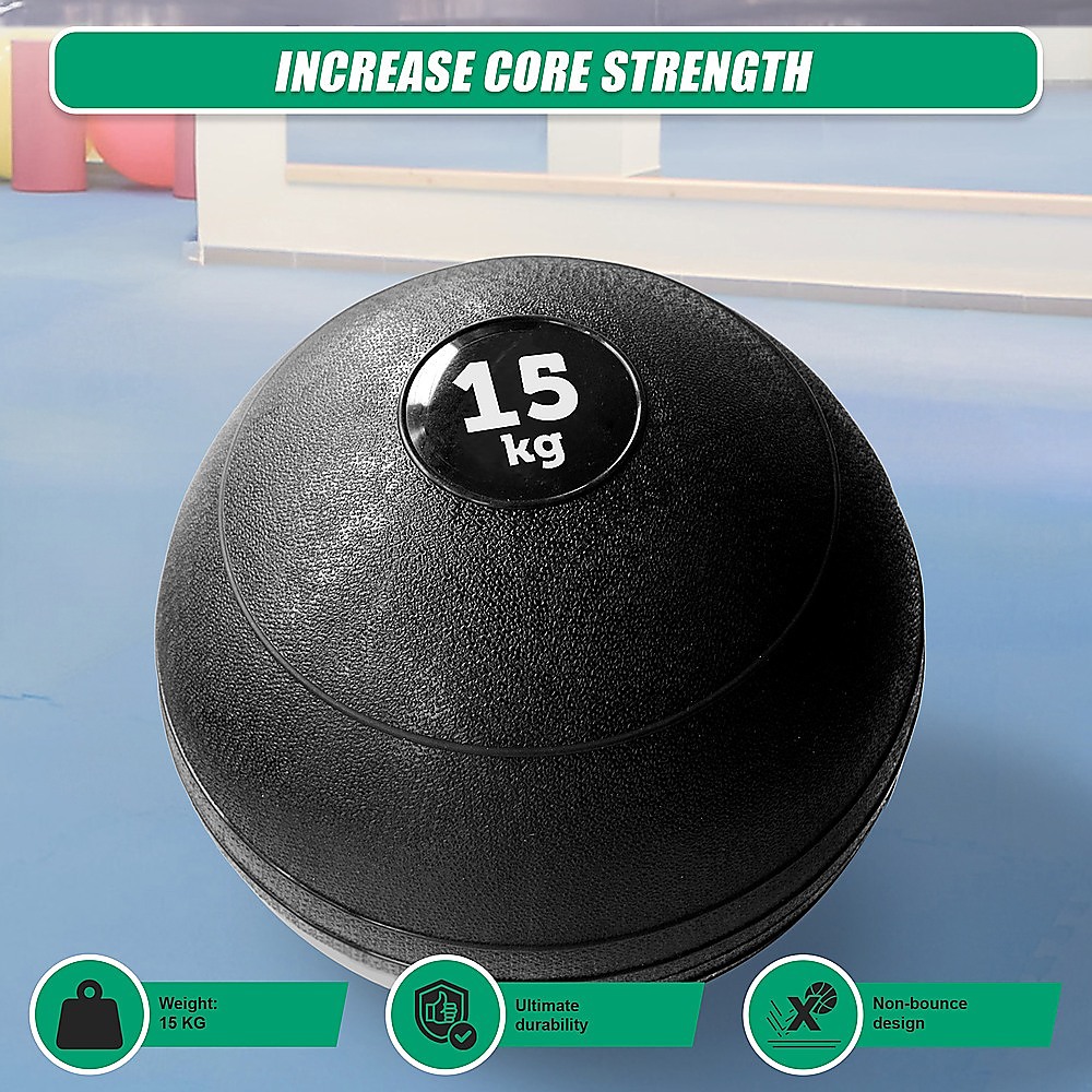 The 15kg Slam Ball is designed for high-intensity training and features a no-bounce, sand-filled construction that prevents bouncing and rolling during use. It is suitable for various fitness activities including CrossFit, MMA, boxing, boot camp, core workouts, and rehabilitation exercises. The durable latex cover ensures long-lasting performance and withstands repeated slamming on solid surfaces.