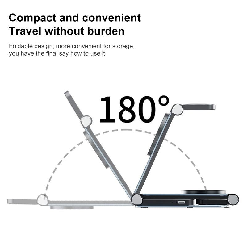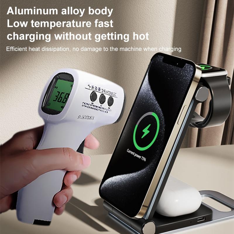 This 15W 3-in-1 foldable desktop wireless charger offers fast and safe charging for compatible devices. Its innovative design allows for versatile use, combining functionality with portability for convenient charging at home or in the office.