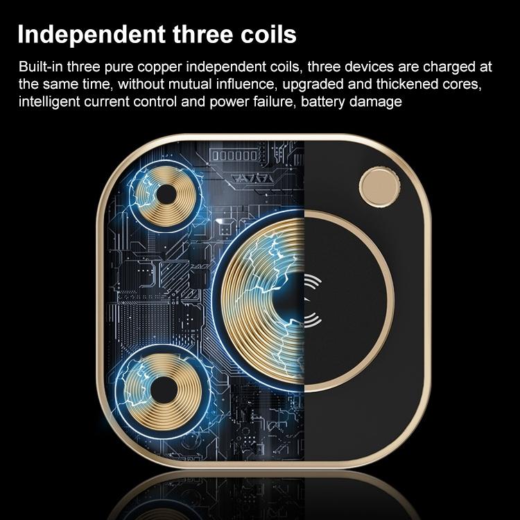 This 15W 3-in-1 wireless charger and table lamp combines functionality and modern design. It supports fast and efficient charging for multiple devices simultaneously, with intelligent detection to optimize power delivery. The device features a sleek appearance and user-friendly operation, making it suitable for various settings.