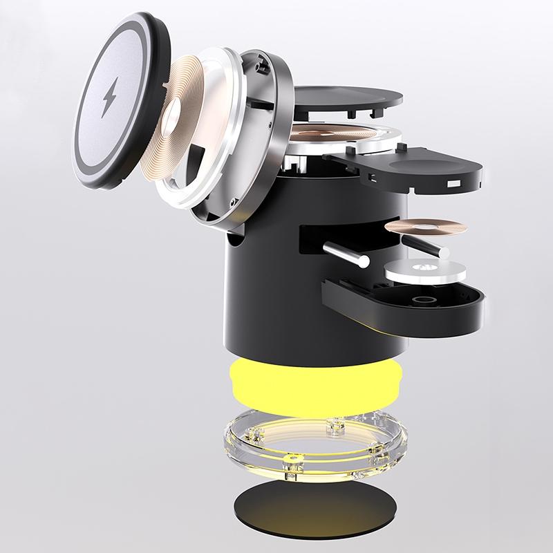 This 15W 4-in-1 foldable magnetic wireless charger offers a versatile and efficient charging solution for multiple devices. Its compact design and adjustable angles make it convenient for everyday use, providing a cozy atmosphere with its warm white LED light.
