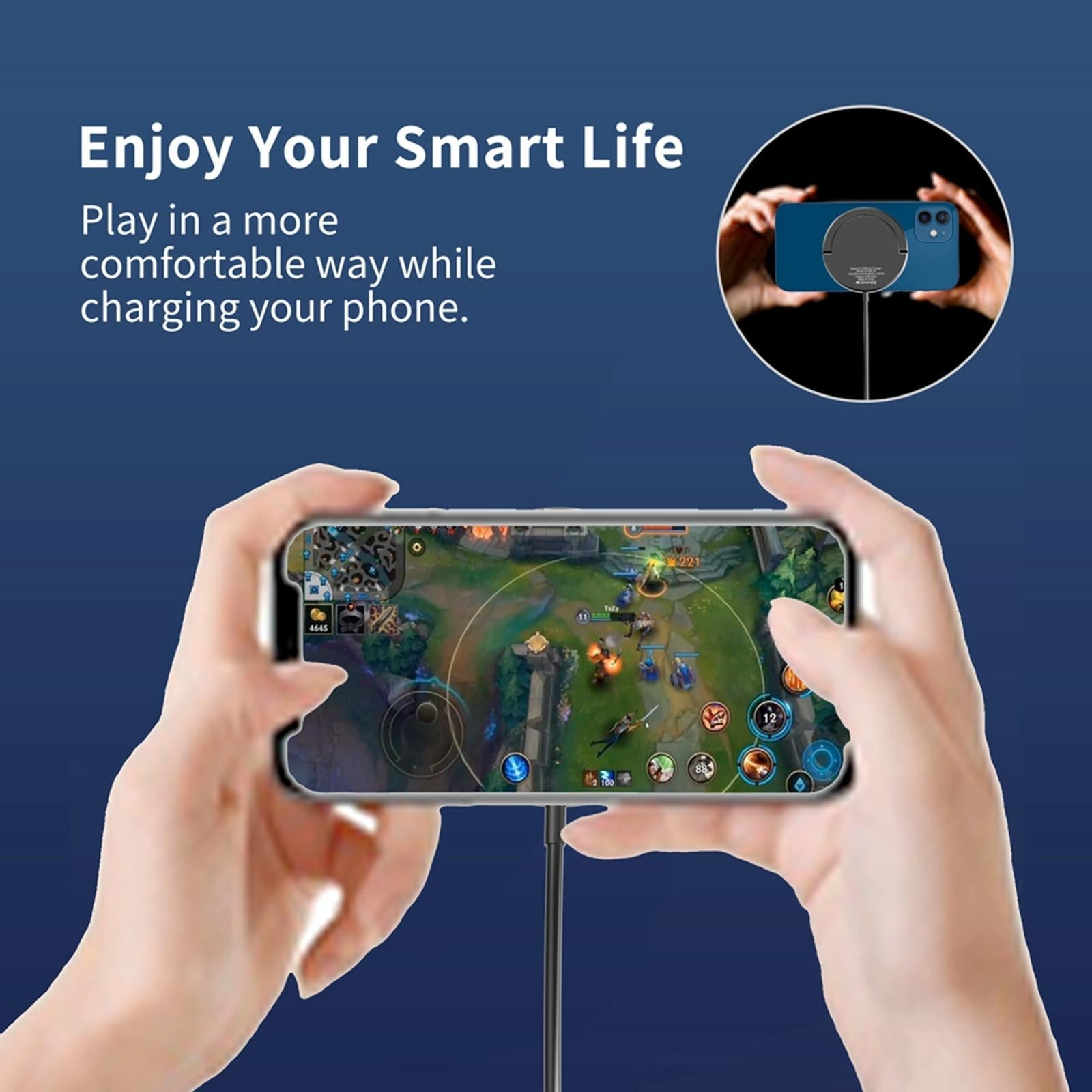 This 15W desktop magnetic wireless charger features a strong magnetic attraction to keep your phone securely in place during use. It supports simultaneous gaming and charging, providing a convenient and efficient charging experience. The charger offers multiple safety protections to ensure safe operation and doubles as a phone stand for added versatility. It comes with a USB-C data cable that supports fast charging interfaces.