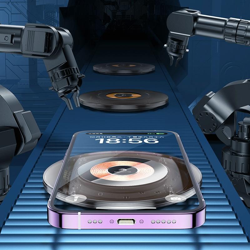This 15W desktop wireless charger features a sleek and ultra-thin design, making it ideal for minimalist setups. It offers efficient and stable charging with built-in intelligent management to prevent overheating, ensuring safety and reliability during use.