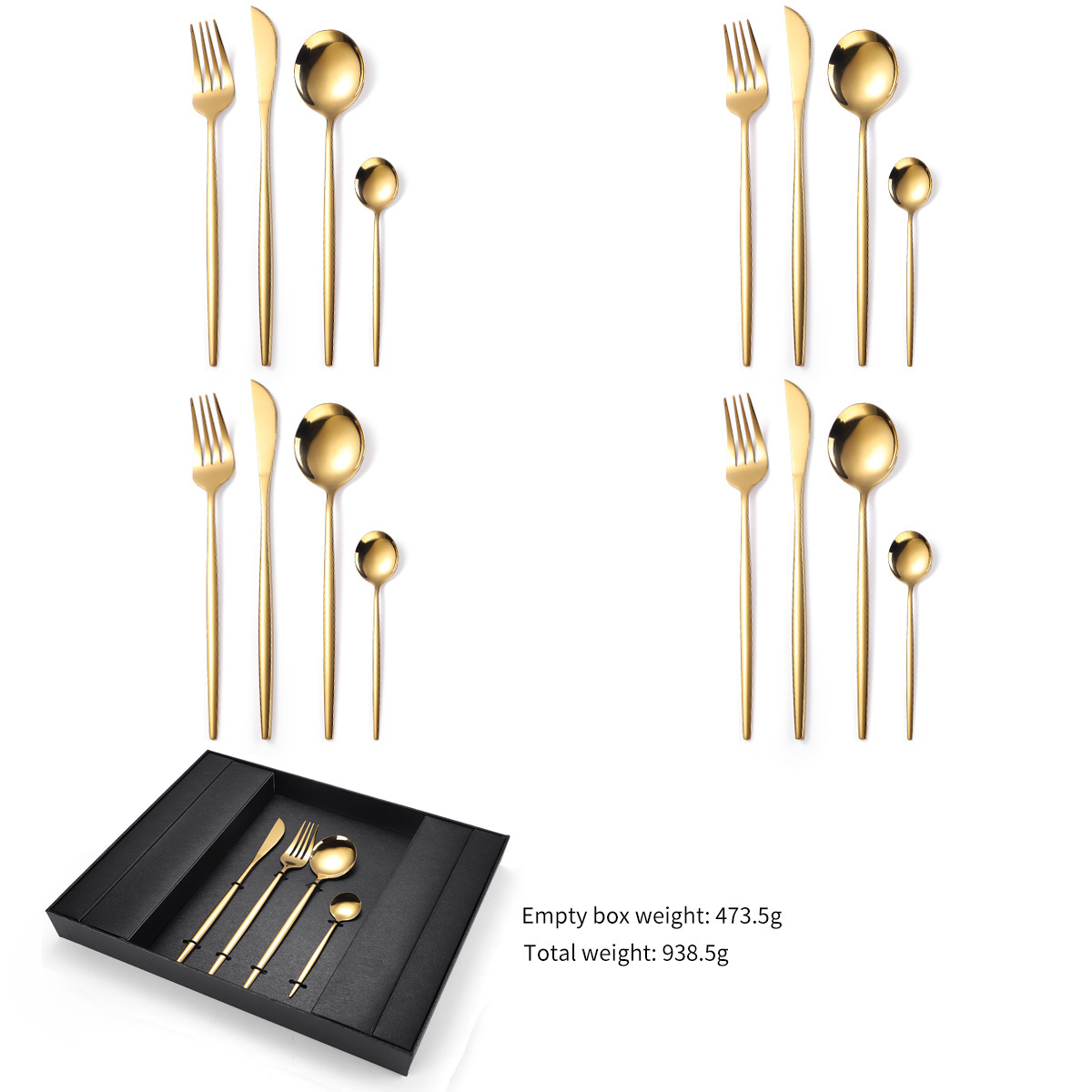 - Includes: 4 dinner knives, 4 dinner forks, 4 dinner spoons, 4 tea spoons