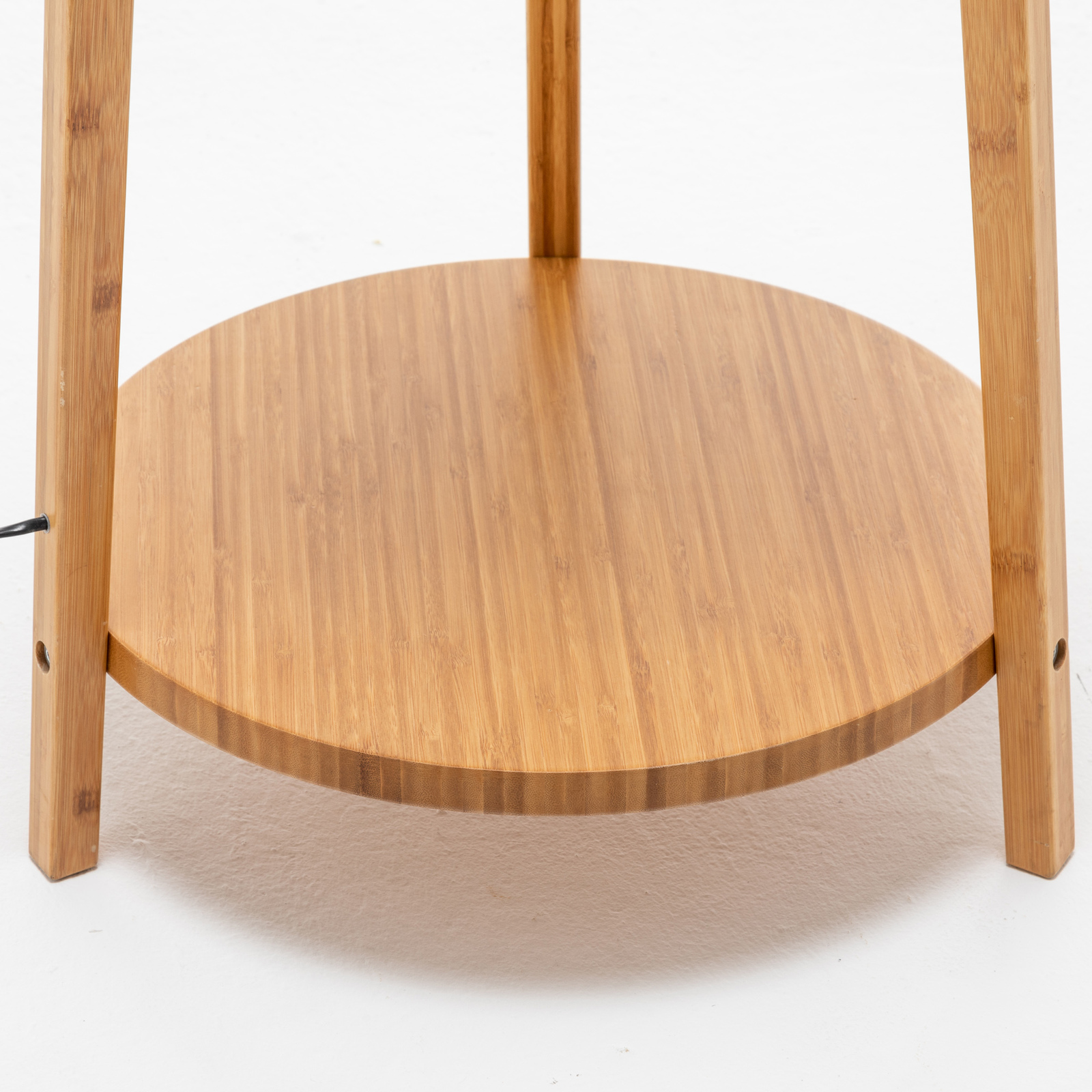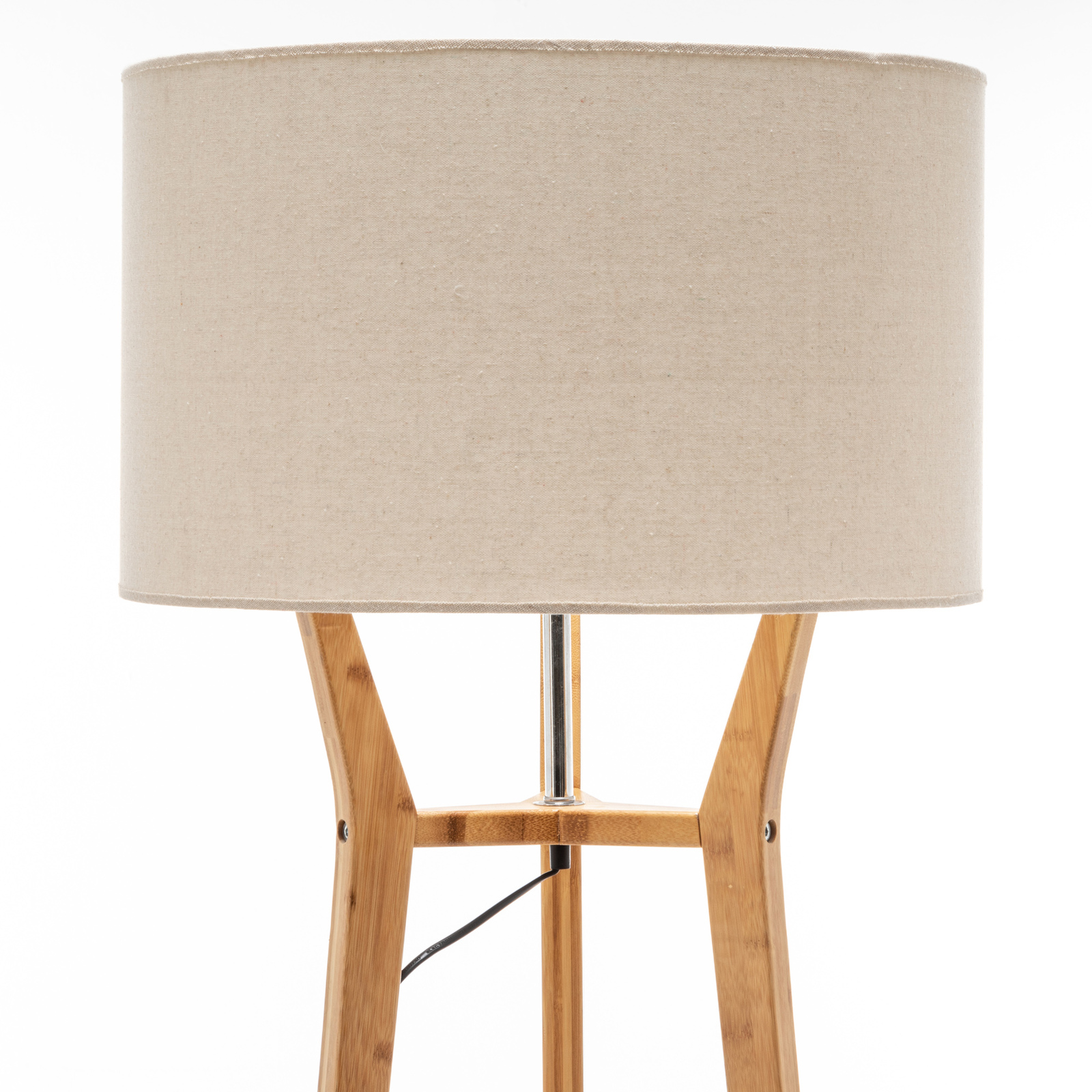 - One large bamboo wooden tripod floor lamp with linen shade