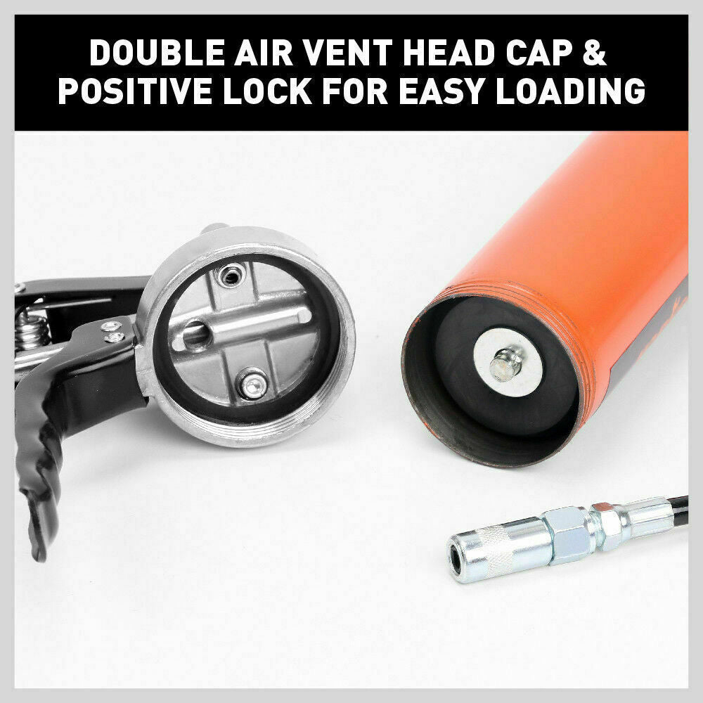 18” Manual Pistol Grip Grease Gun Flow Pressure 4500PSI Flexi Hose & Coupler