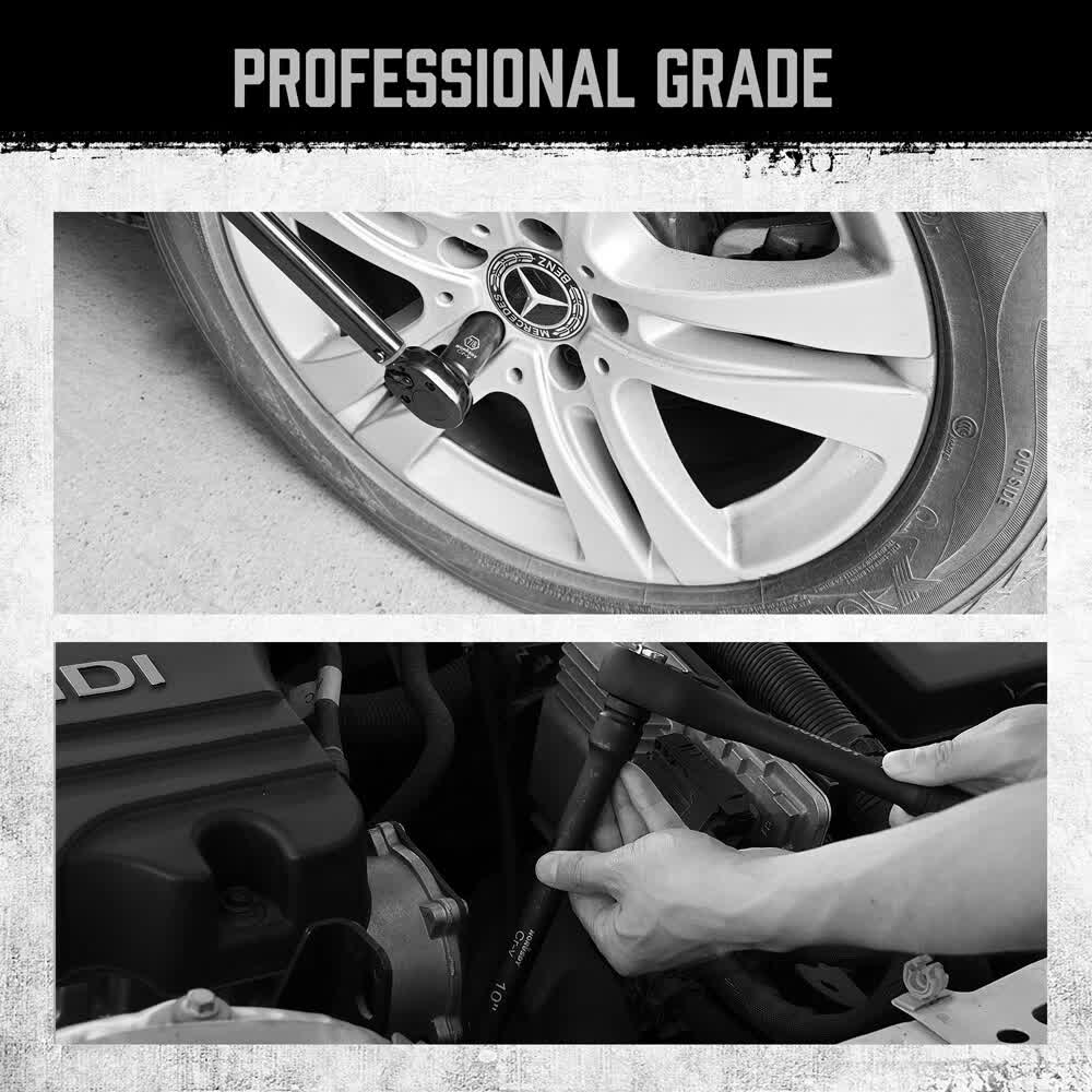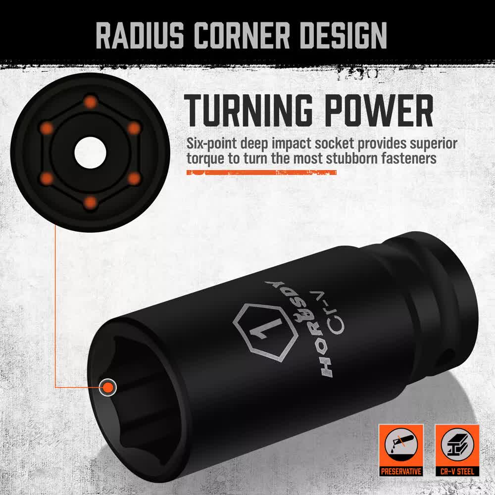 This 18-piece deep impact socket set is designed for professional and DIY use, offering a comprehensive selection of sockets and extensions. The set features a durable construction with high-strength chrome vanadium steel and a corrosion-resistant black phosphate finish, ensuring long-lasting performance. The organized storage case makes it easy to keep all components neatly stored and accessible.