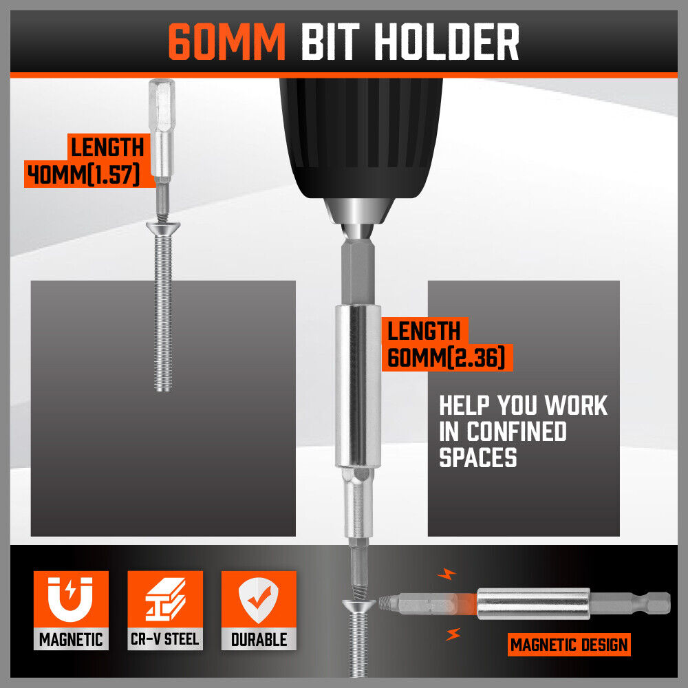 - Bit Holders: 0.24in (25mm), 0.26in (60mm)