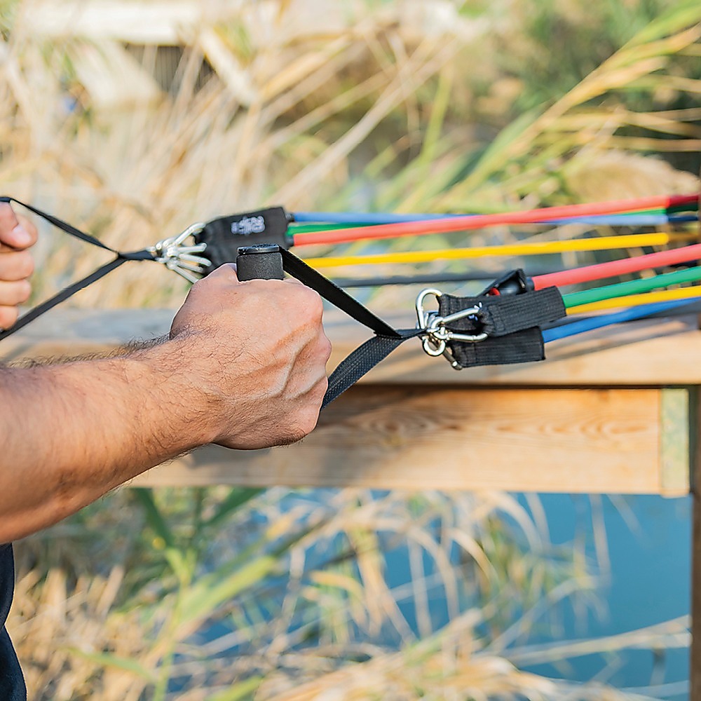 - Includes seven color-coded resistance bands, two O-Ring resistance bands, and one Figure-8 resistance band for varied resistance levels.