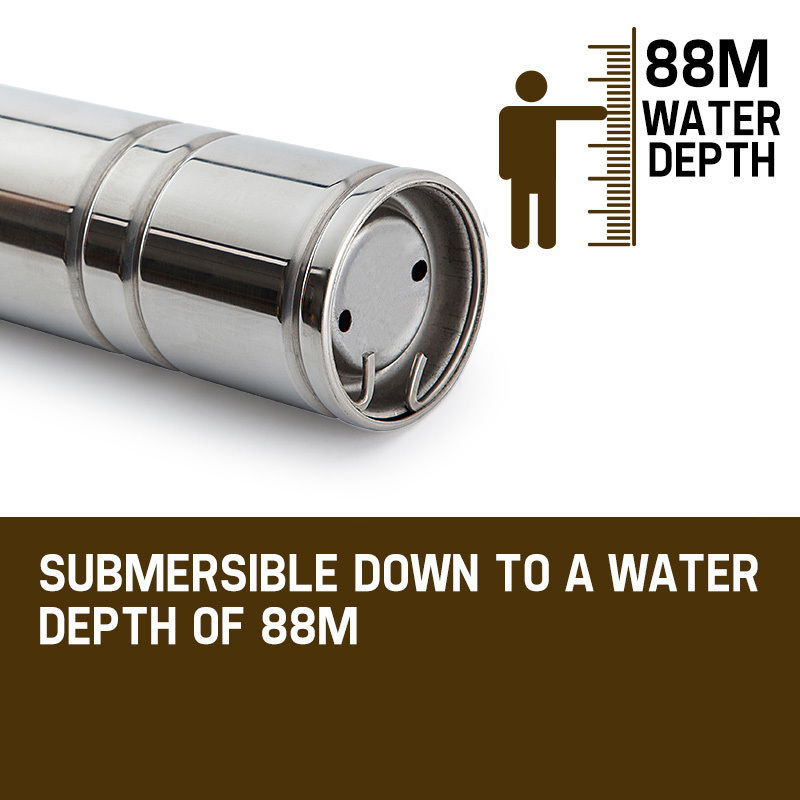 This 1HP submersible bore water pump is designed for deep well irrigation and water extraction. It offers a high flow rate and durable construction, making it suitable for various water sourcing needs from shallow to very deep underground levels.