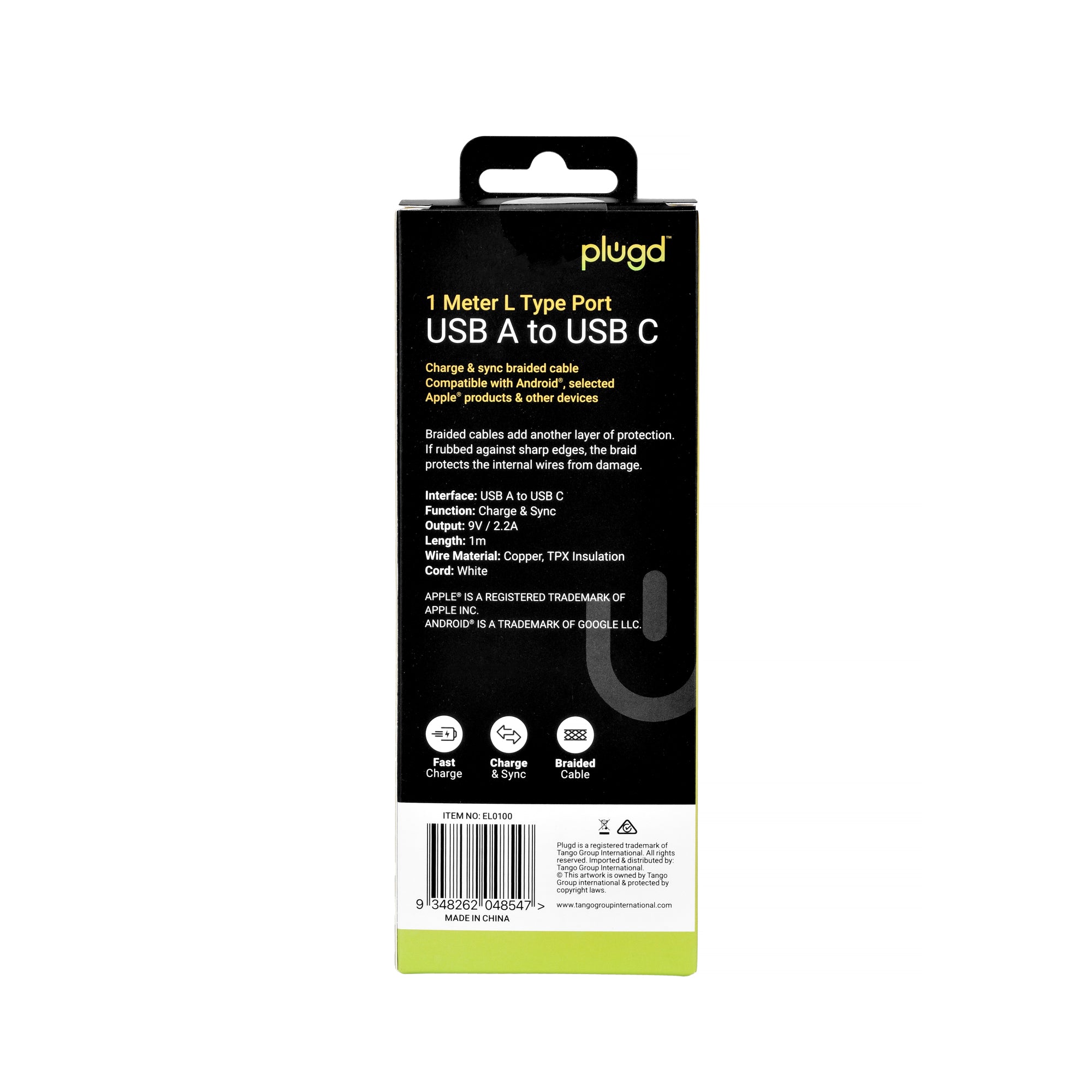This 1-meter USB A to USB C right angle cable features an innovative 90-degree L-shaped design, making it more convenient and comfortable for activities such as gaming, watching videos, or reading e-books while lying on a couch or bed during charging. The braided exterior provides added protection against wear and tear, especially when rubbed against sharp edges. It is compatible with Android devices, selected Apple products, and other devices requiring USB C connections.