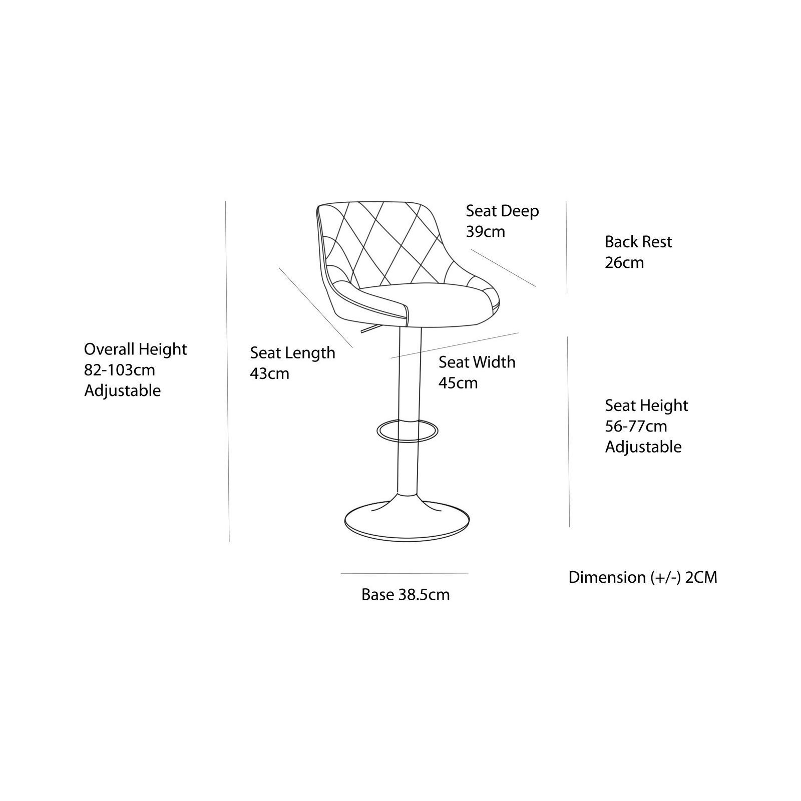 • Overall height adjustment: 82-103cm