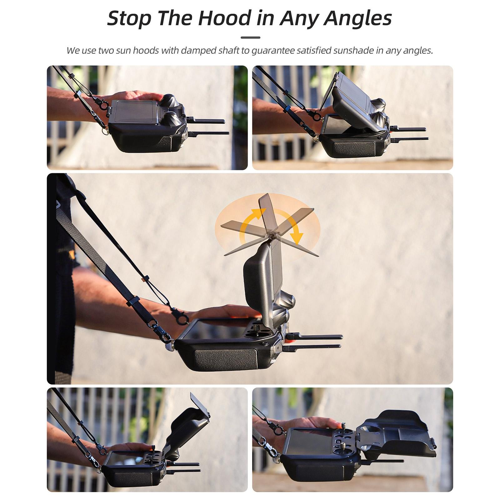 This 2-in-1 sun hood and screen protector is designed for controllers and monitors, providing effective sunshade and protection. It features adjustable angles, an upgraded vice hood for better shading, and an invisible lid that fits seamlessly. The product helps safeguard screens, buttons, and control sticks from scratches and bumps, with screw hooks for secure fixing and easy attachment of neck straps. Made from durable plastic, it is lightweight and easy to use.