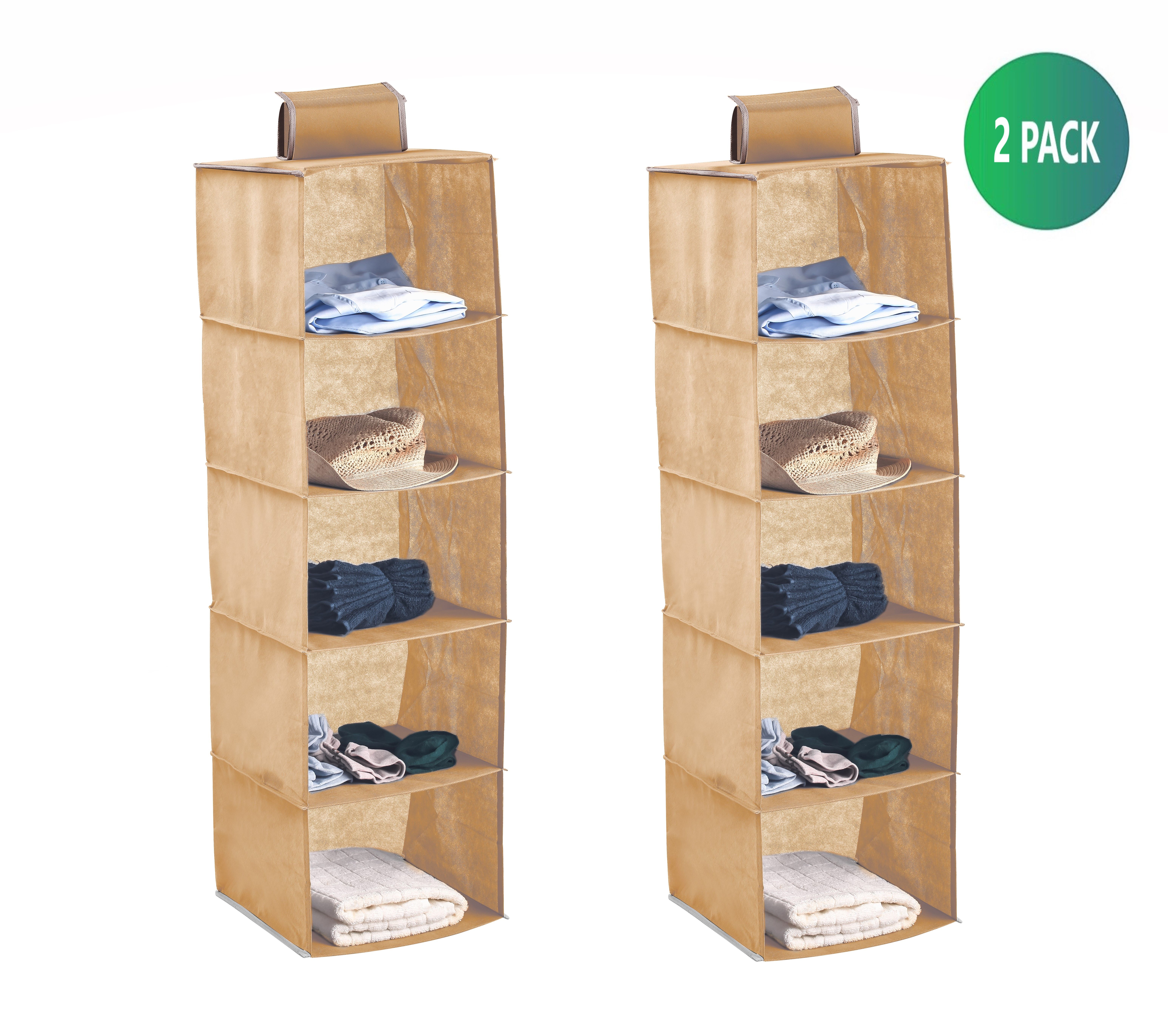 2 Pack 5-Tier Shelf Hanging Closet Organizer and Storage for Clothes (Beige)